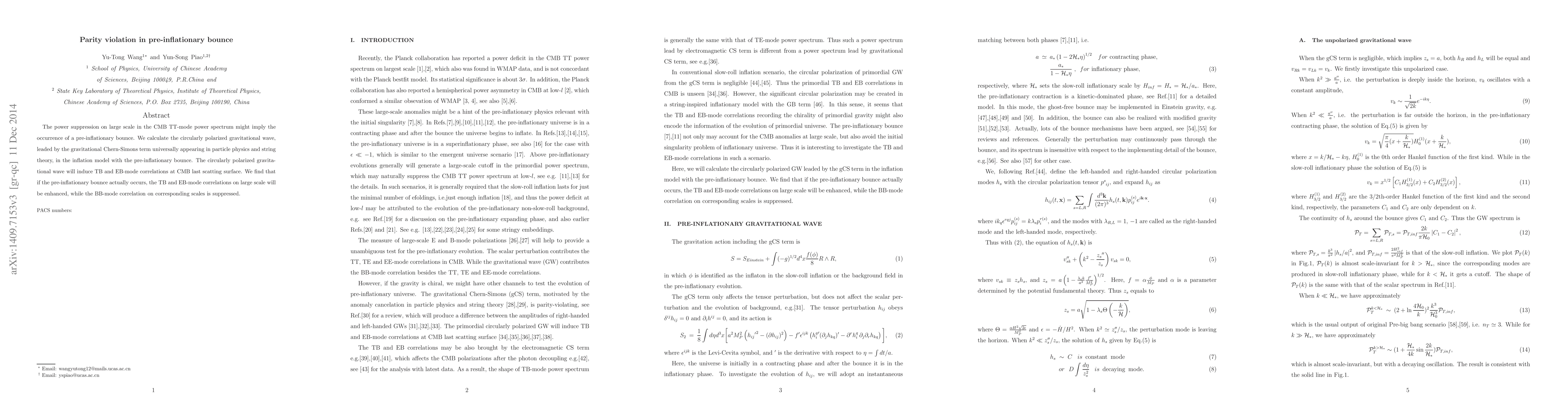 The power suppression at largest scale in the CMB TT powerspectrum might imply the occurrence of a pre-inflationary bounce. We calculate the circularly polarized gravitational wave, leaded by the gravitational Chern-Simons term which universally appears in particle physics and string theory, in an inflationary background with the pre-inflationary bounce. The circularly polarized gravitational wave will induce TB and EB correlations at CMB last scatting surface. We find that although the BB powerspectrum at largest scale is also suppressed, the TB and EB powerspectra at corresponding scales may be enhanced.