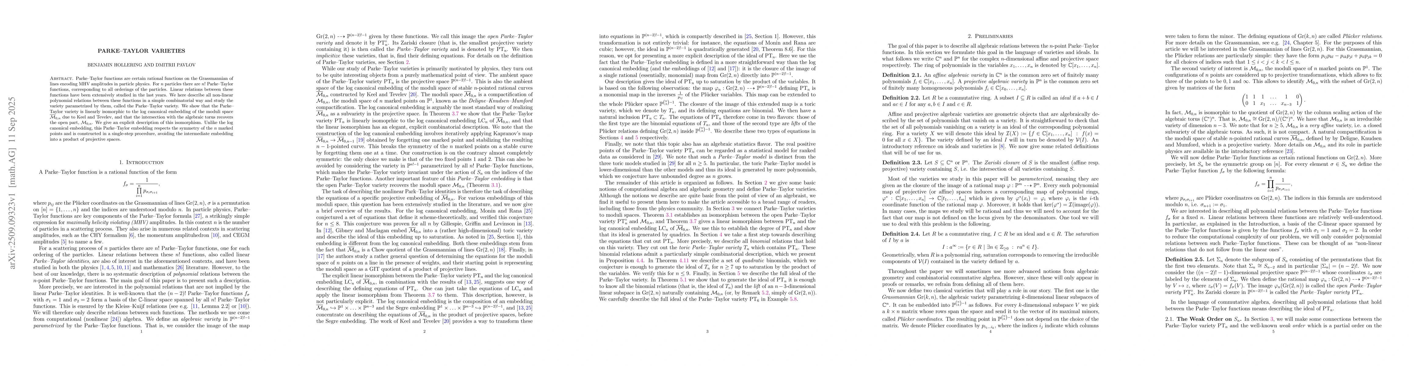 Parke-Taylor functions are certain rational functions on the Grassmannian of lines encoding MHV amplitudes in particle physics. For $n$ particles there are $n!$ Parke-Taylor functions, corresponding to all orderings of the particles. Linear relations between these functions have been extensively studied in the last years. We here describe all non-linear polynomial relations between these functions in a simple combinatorial way and study the variety parametrized by them, called the Parke-Taylor variety. We show that the Parke-Taylor variety is linearly isomorphic to the log canonical embedding of the moduli space $\overline{\mathcal{M}}_{0,n}$ due to Keel and Tevelev, and that the intersection with the algebraic torus recovers the open part, $\mathcal{M}_{0,n}$. We give an explicit description of this isomorphism. Unlike the log canonical embedding, this Parke-Taylor embedding respects the symmetry of the $n$ marked points and is constructed in a single-step procedure, avoiding the intermediate embedding into a product of projective spaces.