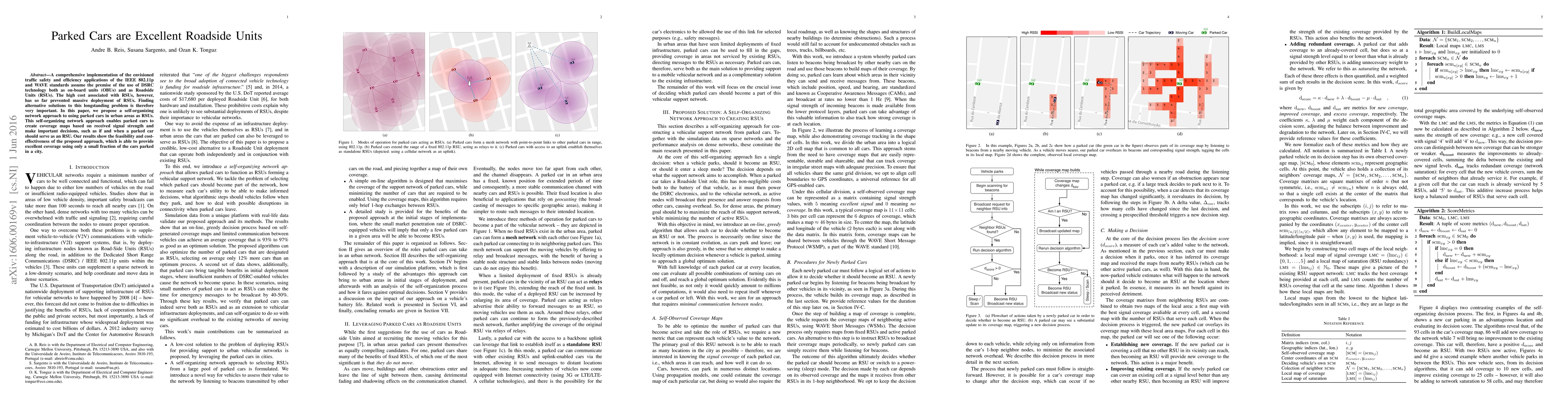 A new approach uses parked cars to create a network of roadside units, providing excellent traffic safety and efficiency coverage at a lower cost. This method is feasible and cost-effective, covering only a small fraction of parked cars in the city.
