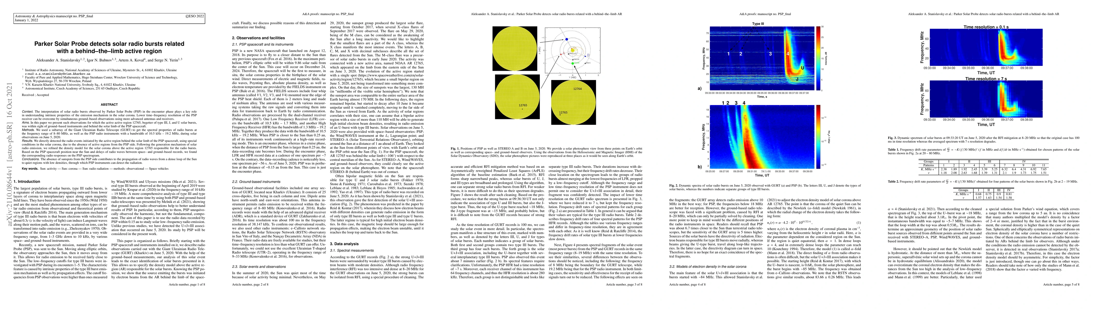 The Parker Solar Probe detected solar radio bursts from an active region behind the solar limb, combining PSP and ground-based observations to refine the density model of the solar corona. The absence of sunspots on the PSP side allowed for the detection of radio waves propagating through low-density regions.