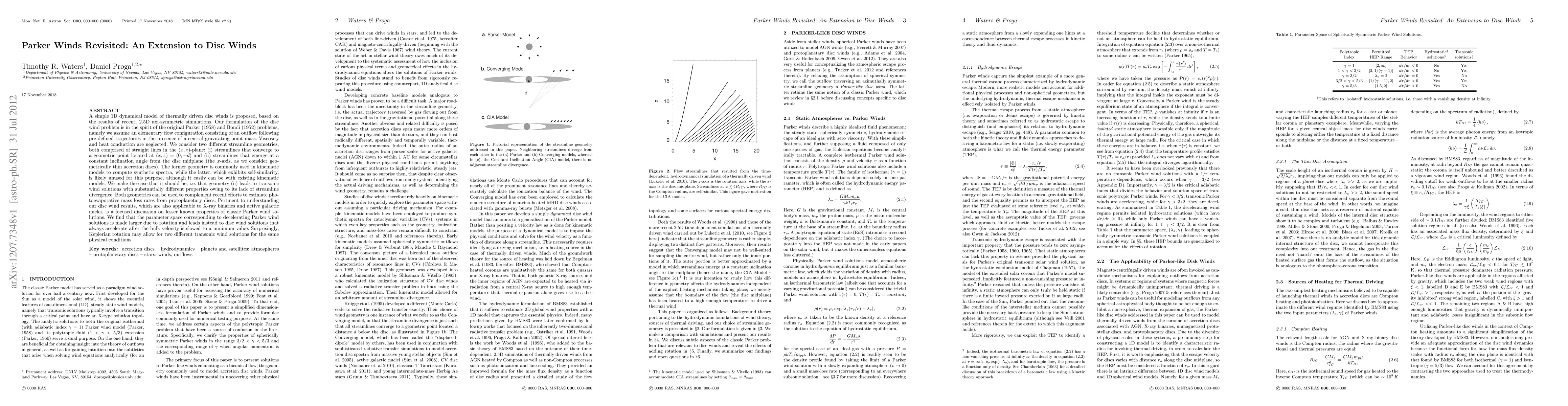 A new model of disc winds is proposed, extending previous work on Parker Winds, with two geometries that lead to transonic wind solutions with different properties.