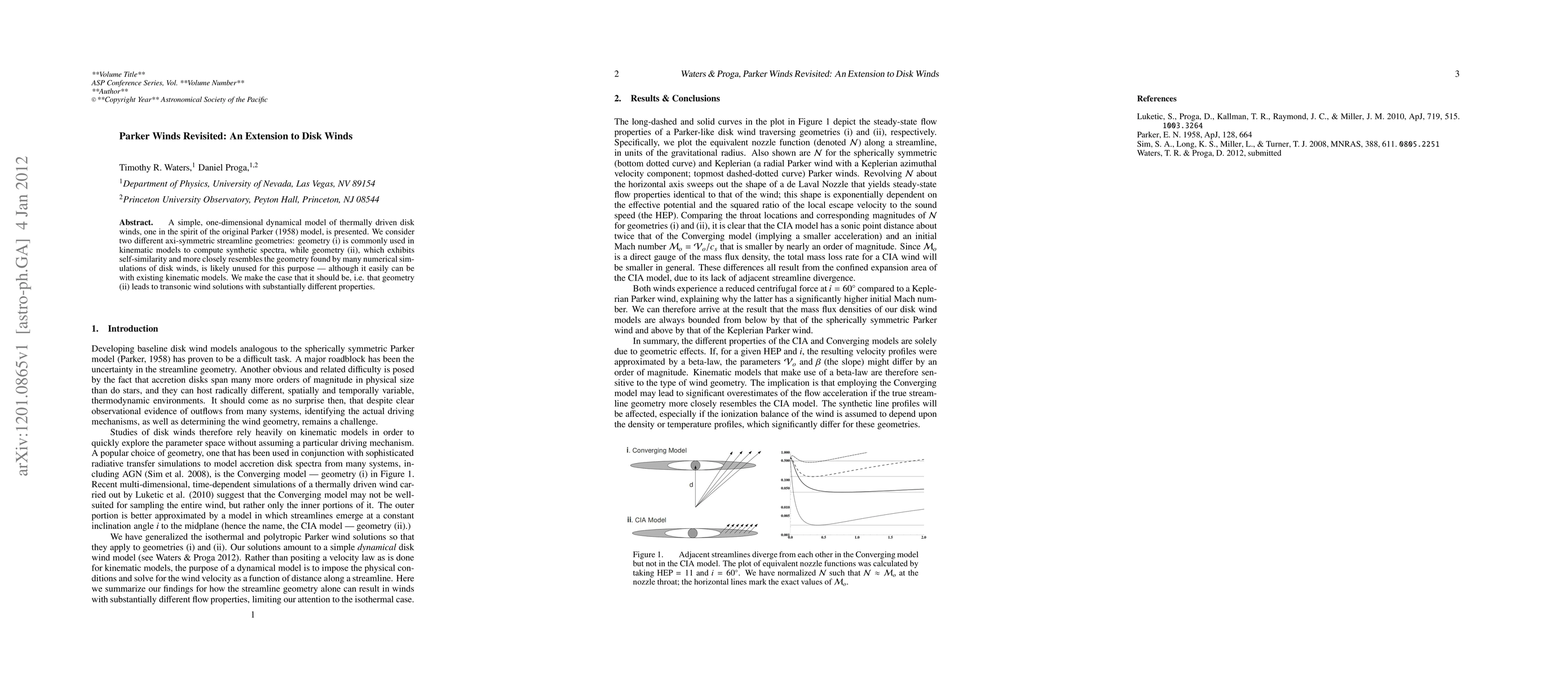 A simple, one-dimensional dynamical model of thermally driven disk winds, one in the spirit of the original Parker (1958) model, is presented. We consider two different axi-symmetric streamline geometries: geometry (i) is commonly used in kinematic models to compute synthetic spectra, while geometry (ii), which exhibits self-similarity and more closely resembles the geometry found by many numerical simulations of disk winds, is likely unused for this purpose - although it easily can be with existing kinematic models. We make the case that it should be, i.e. that geometry (ii) leads to transonic wind solutions with substantially different properties.