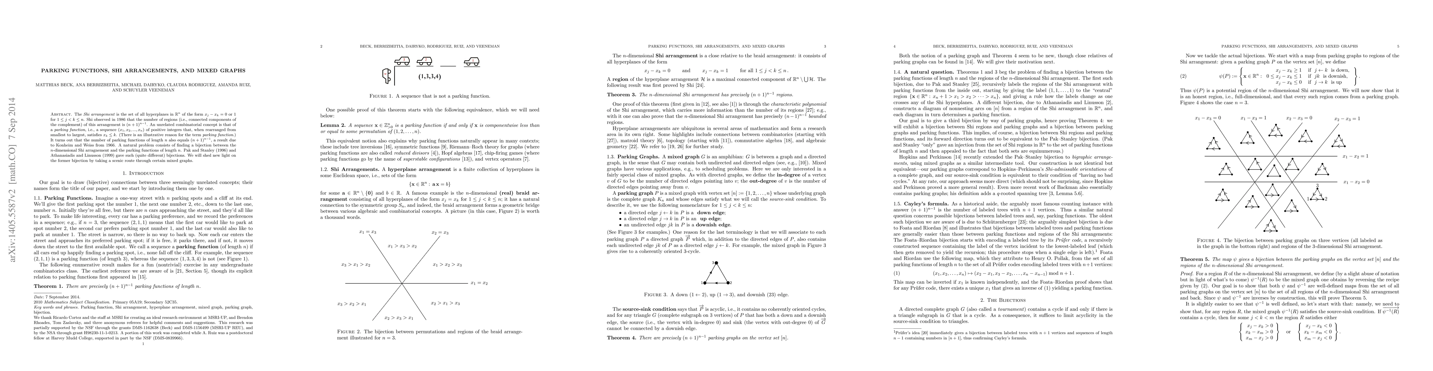 The \emph{Shi arrangement} is the set of all hyperplanes in $\mathbb R^n$ of the form $x_j - x_k = 0$ or $1$ for $1 \le j < k \le n$. Shi observed in 1986 that the number of regions (i.e., connected components of the complement) of this arrangement is $(n+1)^{n-1}$. An unrelated combinatorial concept is that of a \emph{parking function}, i.e., a sequence $(x_1, x_2, ..., x_n)$ of positive integers that, when rearranged from smallest to largest, satisfies $x_k \le k$. (There is an illustrative reason for the term \emph{parking function}.) It turns out that the number of parking functions of length $n$ also equals $(n+1)^{n-1}$, a result due to Konheim and Weiss from 1966. A natural problem consists of finding a bijection between the $n$-dimensional Shi arragnement and the parking functions of length $n$. Stanley and Pak (1996) and Athanasiadis and Linusson 1999) gave such (quite different) bijections. We will shed new light on the former bijection by taking a scenic route through certain mixed graphs.