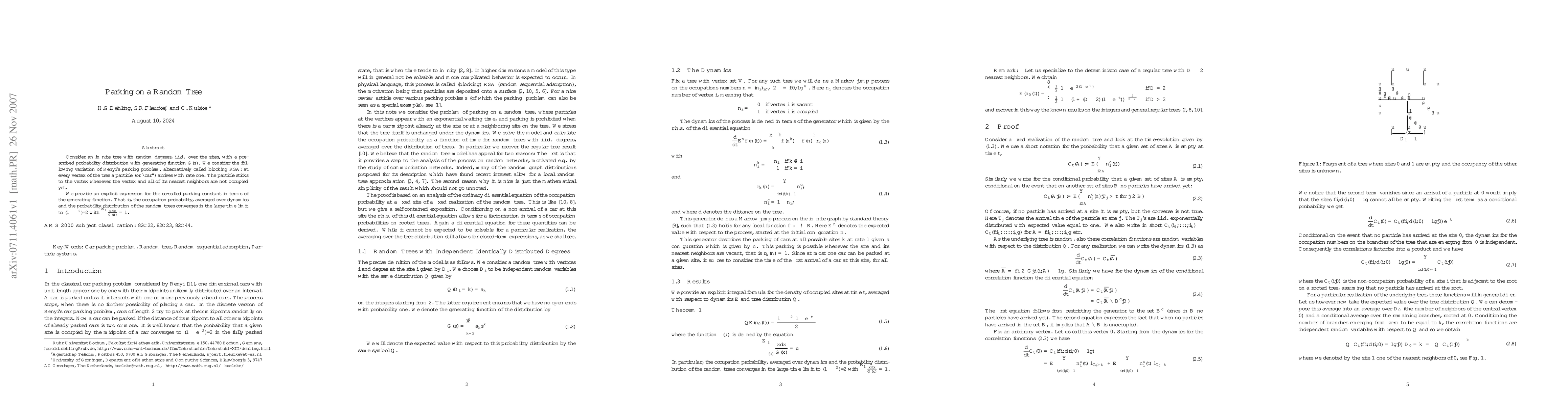 The research models parking on a random tree where particles arrive at vertices with exponential waiting times and parking is prohibited if there's a car-midpoint at the site or its neighbors. The tree's structure remains unchanged under these dynamics.