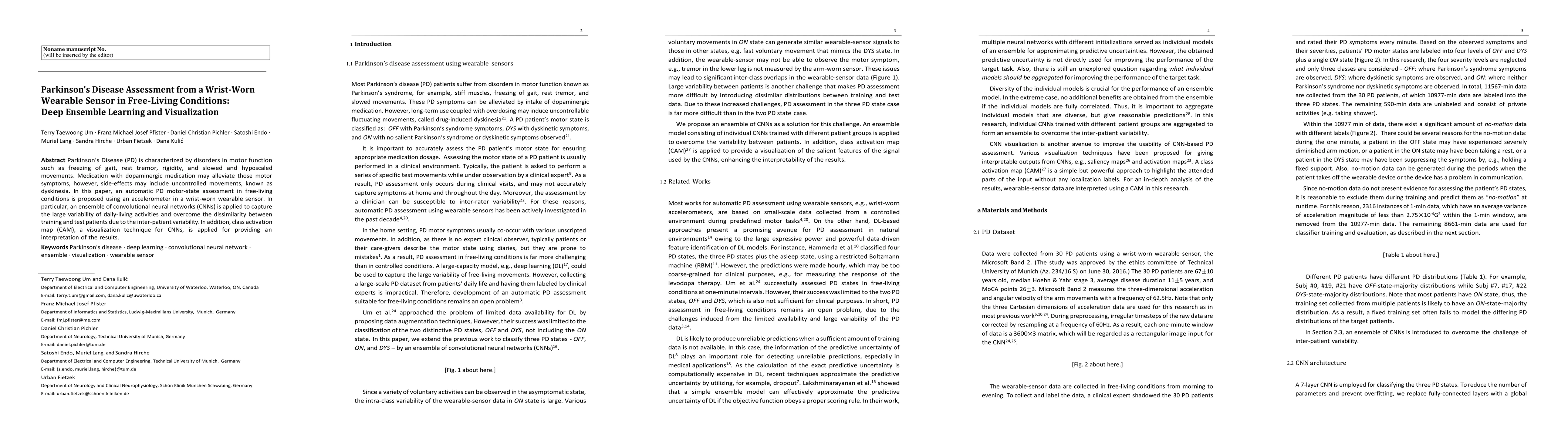 This paper proposes an automatic assessment of Parkinson's Disease motor states using a wrist-worn sensor and an ensemble of convolutional neural networks to handle inter-patient variability. It also employs class activation maps for visualizing and interpreting the neural network's decision-making process.