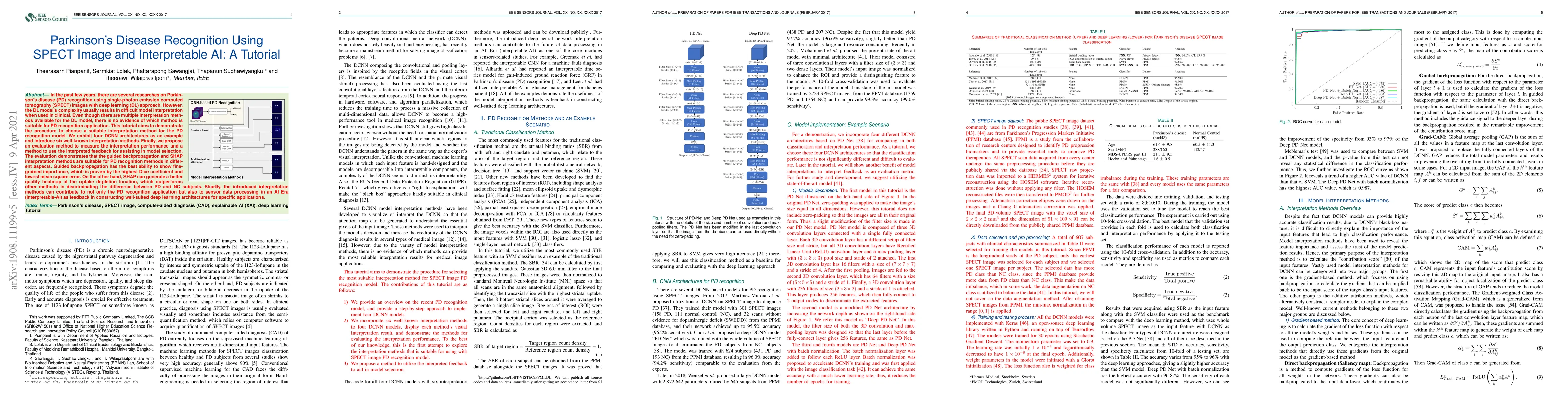 A tutorial explores how to interpret deep learning models used for Parkinson's disease recognition from SPECT images, highlighting two methods that perform well: guided backpropagation for fine-grained importance and SHAP for heatmap quality.