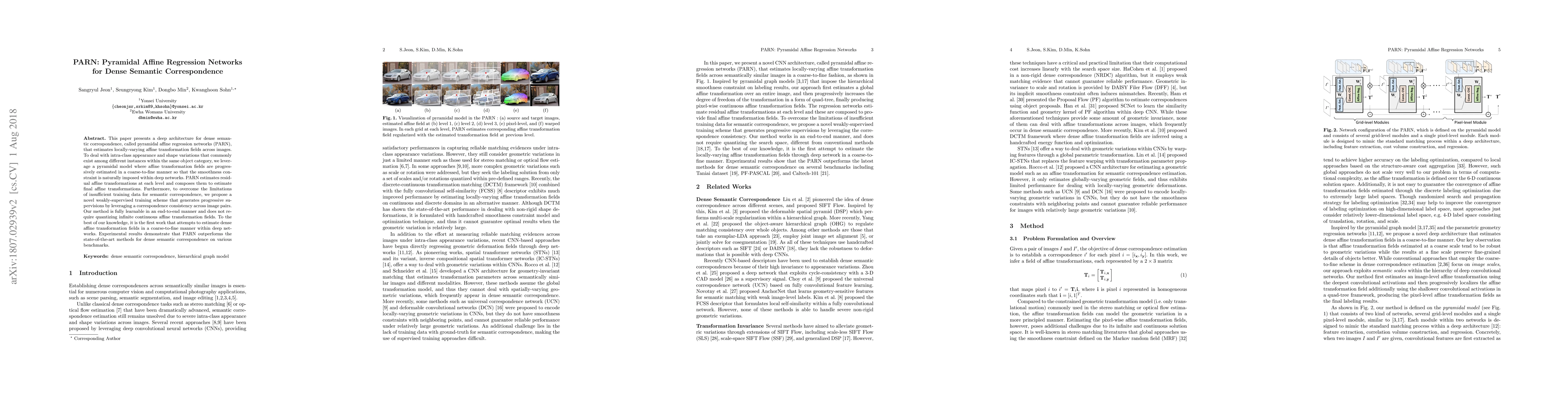 This paper introduces pyramidal affine regression networks (PARN) for dense semantic correspondence, estimating locally-varying affine transformations in a coarse-to-fine manner. It employs a weakly-supervised training scheme to address data limitations and outperforms existing methods on benchmarks.