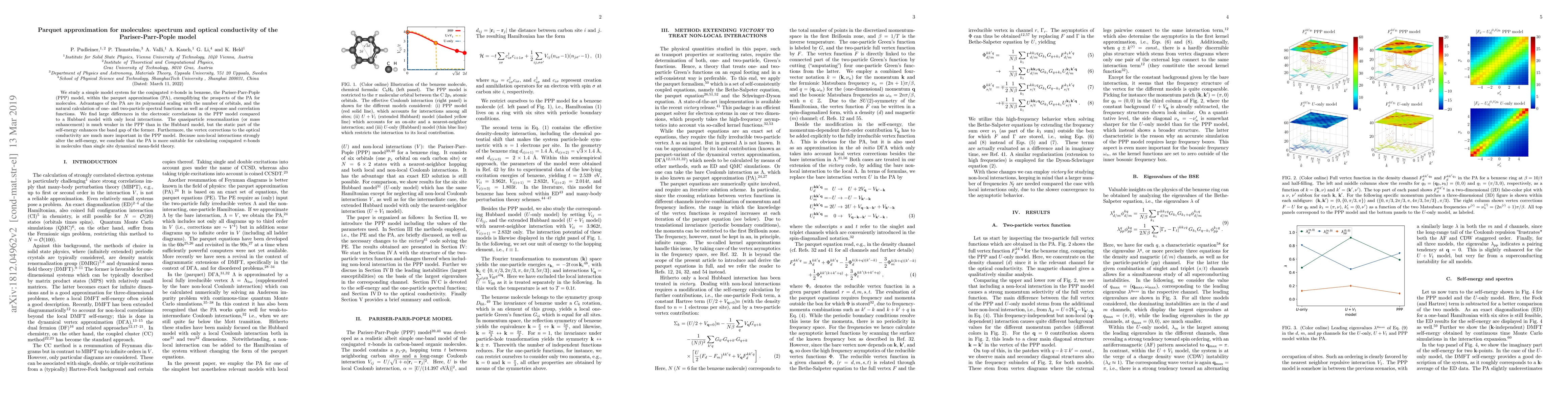 This paper investigates the Pariser-Parr-Pople (PPP) model for conjugated $\pi$-bonds in benzene using the parquet approximation (PA), highlighting its advantages over the Hubbard model. The PA reveals significant differences in electronic correlations and optical conductivity, suggesting it is more effective for conjugated $\pi$-bonds than dynamical mean-field theory.