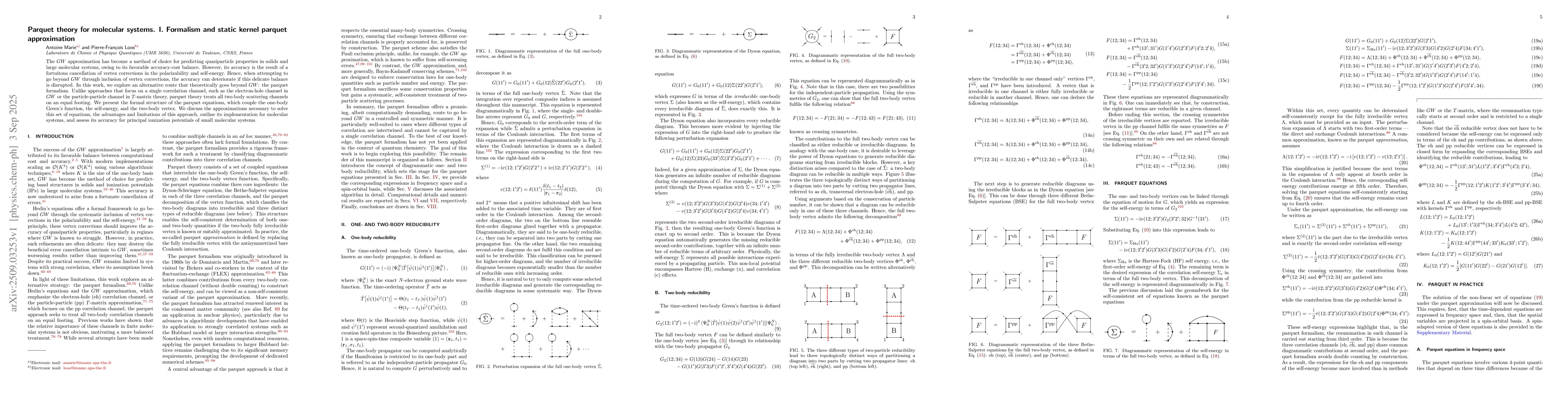 The $GW$ approximation has become a method of choice for predicting quasiparticle properties in solids and large molecular systems, owing to its favorable accuracy-cost balance. However, its accuracy is the result of a fortuitous cancellation of vertex corrections in the polarizability and self-energy. Hence, when attempting to go beyond $GW$ through inclusion of vertex corrections, the accuracy can deteriorate if this delicate balance is disrupted. In this work, we explore an alternative route that theoretically goes beyond $GW$: the parquet formalism. Unlike approaches that focus on a single correlation channel, such as the electron-hole channel in $GW$ or the particle-particle channel in $T$-matrix theory, parquet theory treats all two-body scattering channels on an equal footing. We present the formal structure of the parquet equations, which couple the one-body Green's function, the self-energy, and the two-body vertex. We discuss the approximations necessary to solve this set of equations, the advantages and limitations of this approach, outline its implementation for molecular systems, and assess its accuracy for principal ionization potentials of small molecular systems.