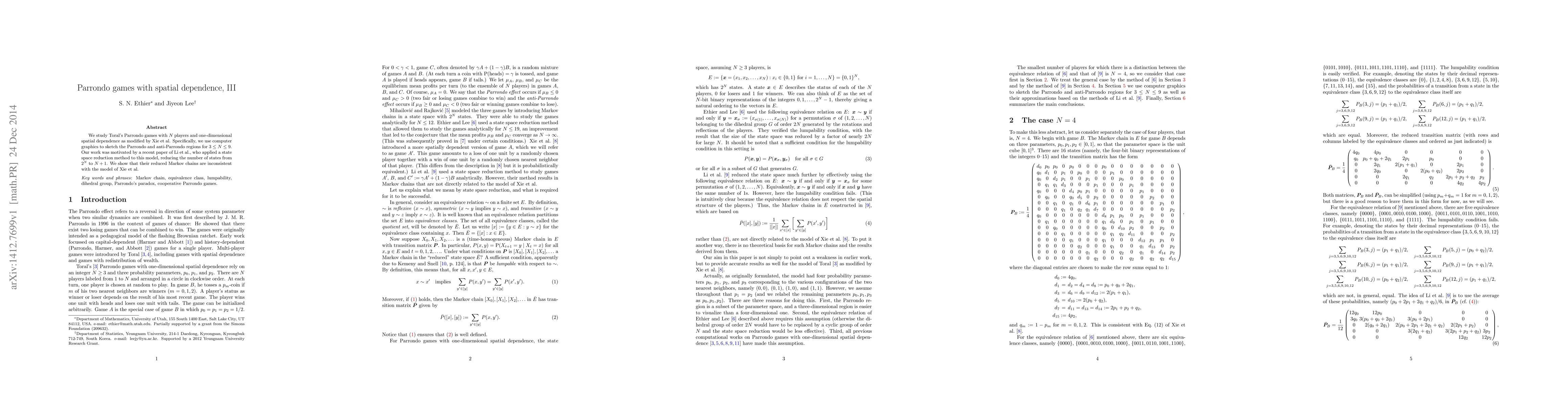 We study Toral's Parrondo games with $N$ players and one-dimensional spatial dependence as modified by Xie et al. Specifically, we use computer graphics to sketch the Parrondo and anti-Parrondo regions for $3\le N\le 9$. Our work was motivated by a recent paper of Li et al., who applied a state space reduction method to this model, reducing the number of states from $2^N$ to $N+1$. We show that their reduced Markov chains are inconsistent with the model of Xie et al.