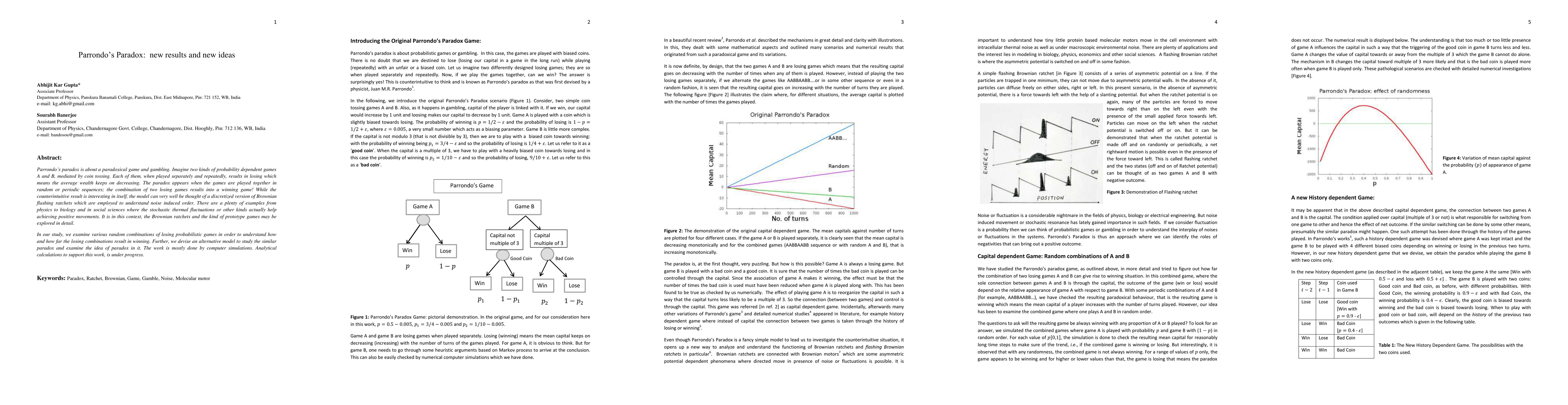 Parrondo's paradox demonstrates how combining two losing games can yield a winning strategy, akin to Brownian motion. This study explores various losing game combinations to reveal the conditions under which a paradox emerges and proposes a new model for simulation, focusing on noise-induced order in systems.