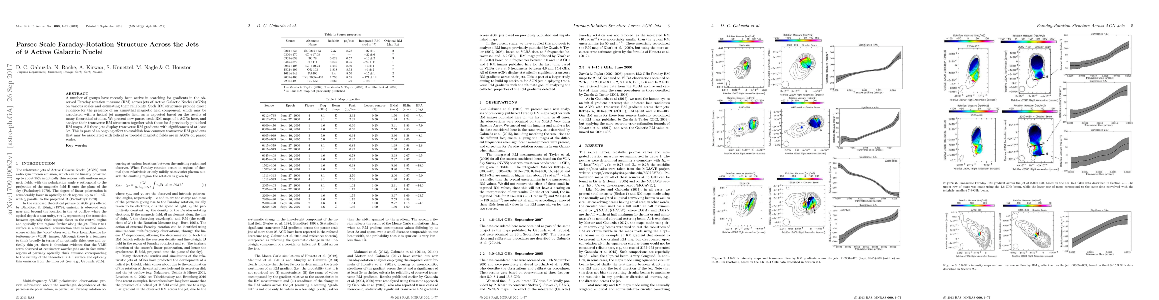 A number of groups have recently been active in searching for gradients in the ob- served Faraday rotation measure (RM) across jets of Active Galactic Nuclei (AGNs) on various scales and estimating their reliability. Such RM structures provide direct evidence for the presence of an azimuthal magnetic field component, which may be associated with a helical jet magnetic field, as is expected based on the results of many theoretical studies. We present new parsec-scale RM maps of 4 AGNs here, and analyze their transverse RM structures together with those for 5 previously published RM maps. All these jets display transverse RM gradients with significances of at least 3{\sigma}. This is part of an ongoing effort to establish how common transverse RM gradients that may be associated with helical or toroidal magnetic fields are in AGNs on parsec scales.