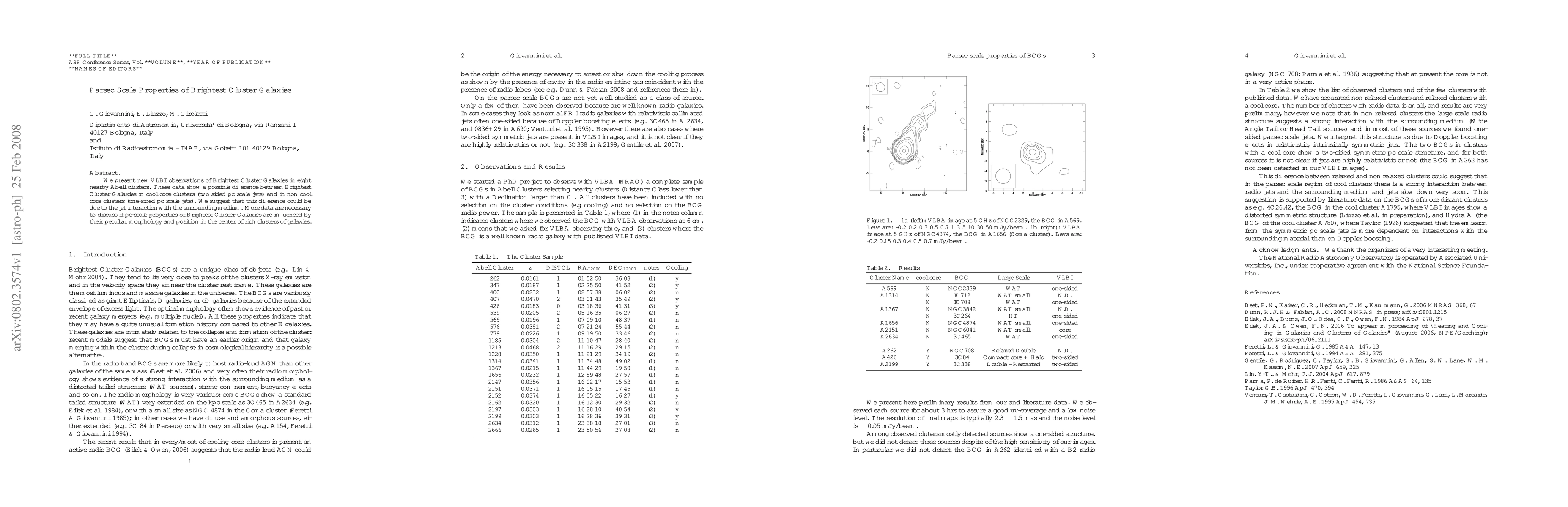 We present new VLBI observations of Brightest Cluster Galaxies in eight nearby Abell clusters. These data show a possible difference between Brightest Cluster Galaxies in cool core clusters (two-sided pc scale jets) and in non cool core clusters (one-sided pc scale jets). We suggest that this difference could be due to the jet interaction with the surrounding medium. More data are necessary to discuss if pc-scale properties of Brightest Cluster Galaxies are influenced by their peculiar morphology and position in the center of rich clusters of galaxies.