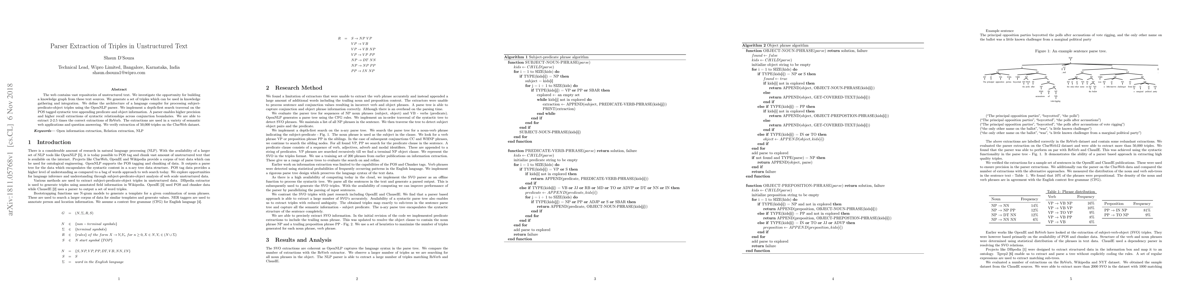 Researchers developed a method to extract triples from unstructured text using OpenNLP parser, achieving 2-2.5 times more correct extractions than existing methods, with potential applications in semantic web and question answering.