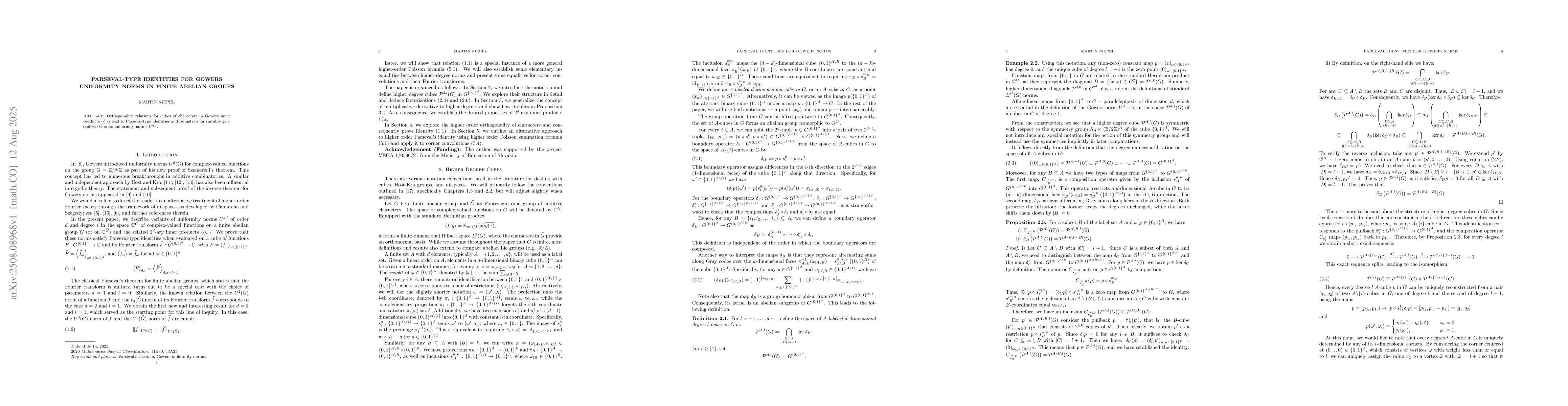 The novelty lies in the generalization of Gowers uniformity norms and the development of associated Parseval identities, offering new insights into higher-order Fourier analysis.