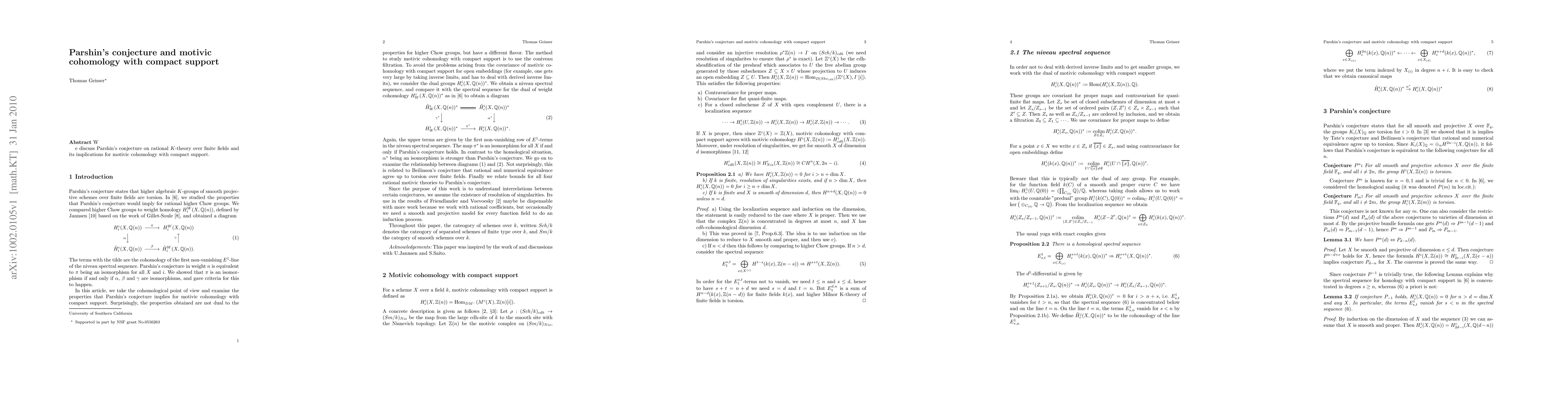 Summary: This paper explores Parshin's conjecture concerning rational K-theory over finite fields, highlighting its significance and potential implications for the development of motivic cohomology with compact support.