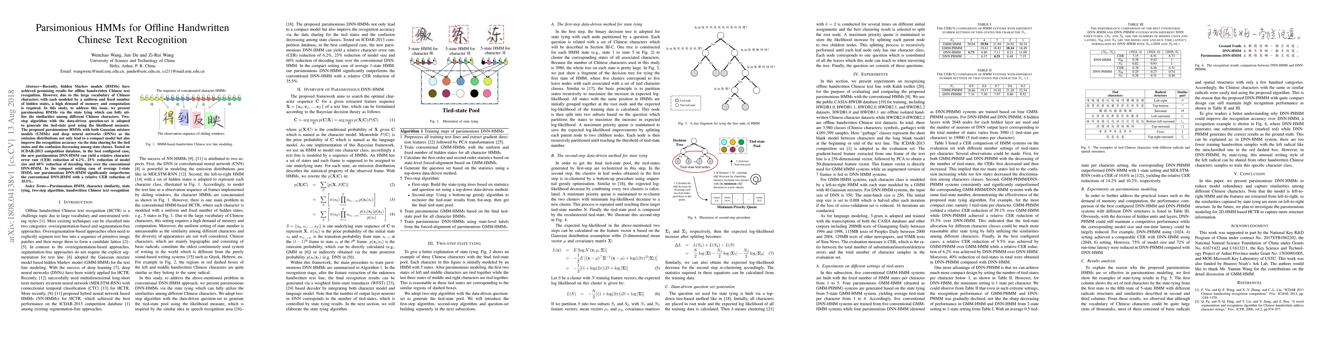 This paper proposes parsimonious hidden Markov models (HMMs) for offline handwritten Chinese text recognition that utilize state tying to reduce memory and computation. The approach improves recognition accuracy and model compactness, achieving a 6.2% relative character error rate reduction and 25% model size reduction compared to conventional DNN-HMMs.
