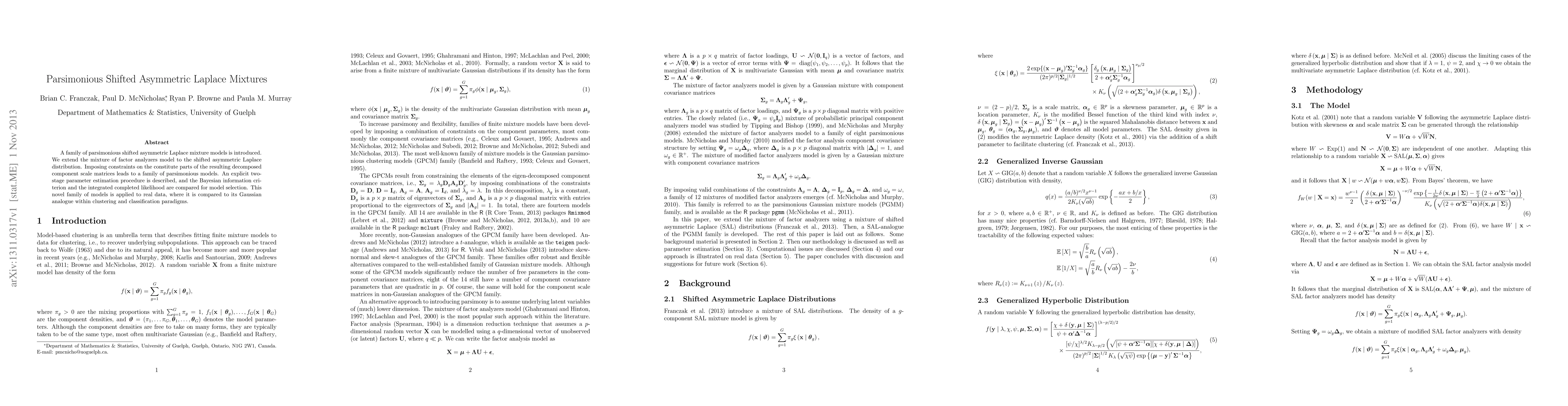 This paper introduces parsimonious shifted asymmetric Laplace mixture models, extending the mixture of factor analyzers to the shifted asymmetric Laplace distribution. It employs a two-stage parameter estimation and compares model selection criteria, demonstrating the models' effectiveness in clustering and classification tasks compared to Gaussian analogues.