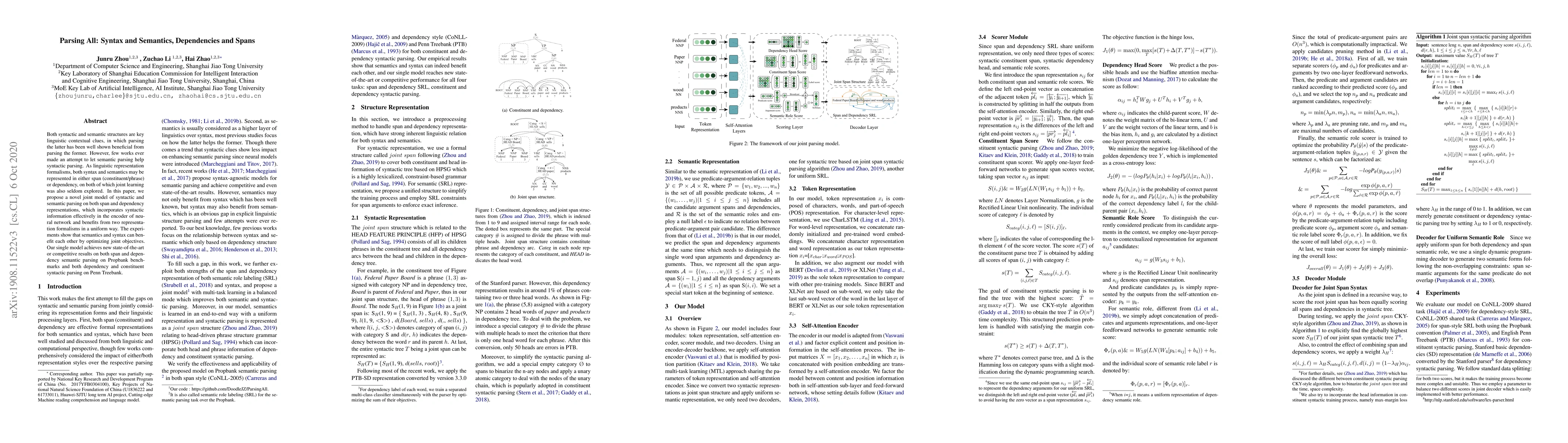 This paper proposes a joint model for syntactic and semantic parsing using both span and dependency representations, demonstrating that semantic parsing can aid syntactic parsing and vice versa. The model achieves state-of-the-art results on multiple parsing benchmarks, showing mutual benefits from joint learning.