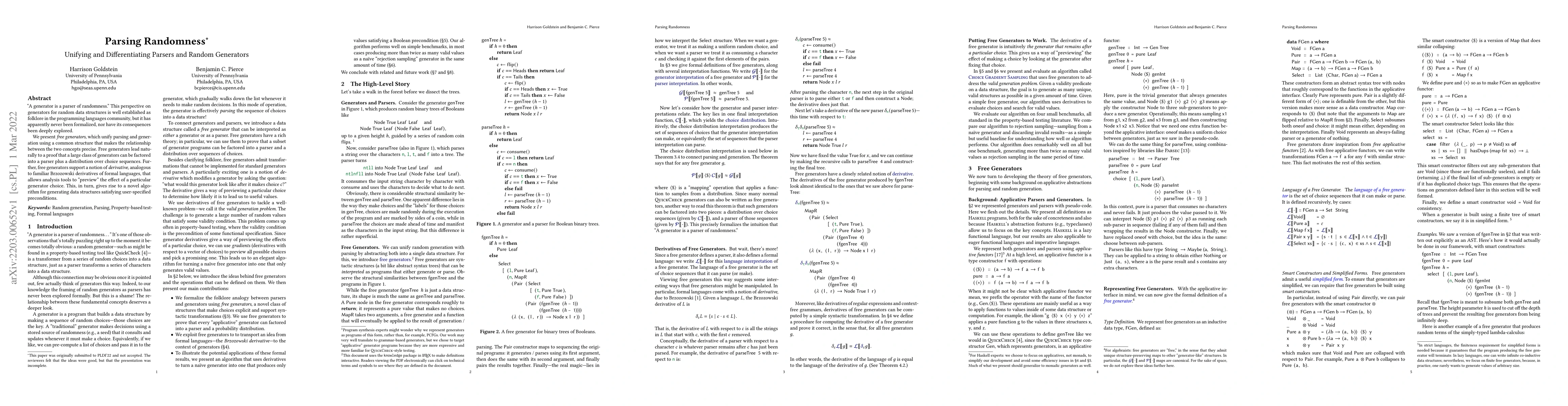 Researchers develop a unified framework for parsing and generating random data structures, enabling new tools for analyzing and predicting generator behavior.
