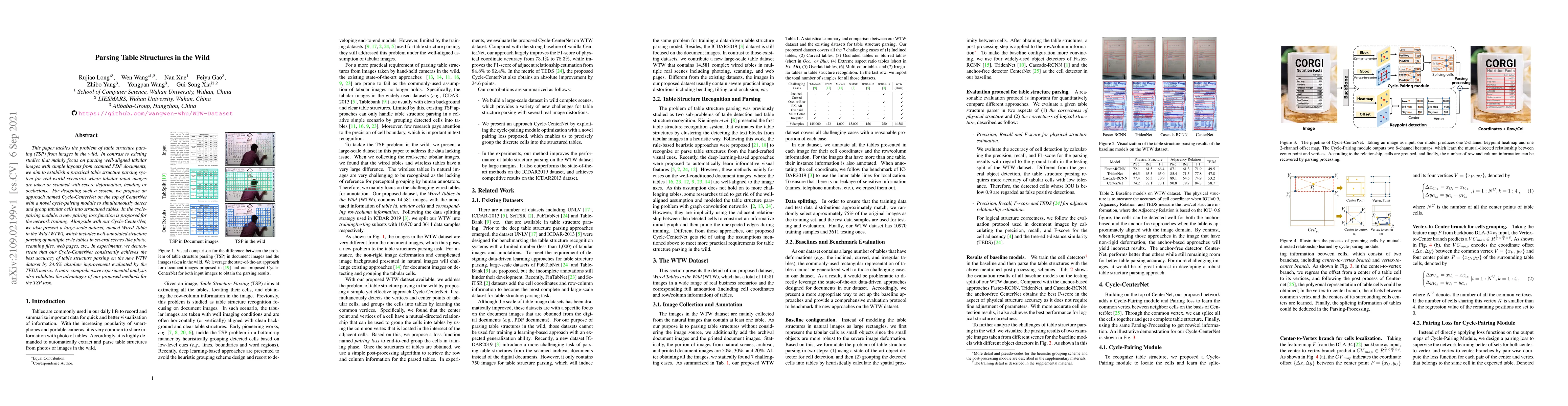 This paper proposes Cycle-CenterNet, an advanced method for parsing table structures in real-world images with severe deformations, and introduces the WTW dataset for training and evaluation. Cycle-CenterNet achieves a 24.6% improvement in accuracy over existing methods, demonstrating superior performance in practical table structure parsing scenarios.