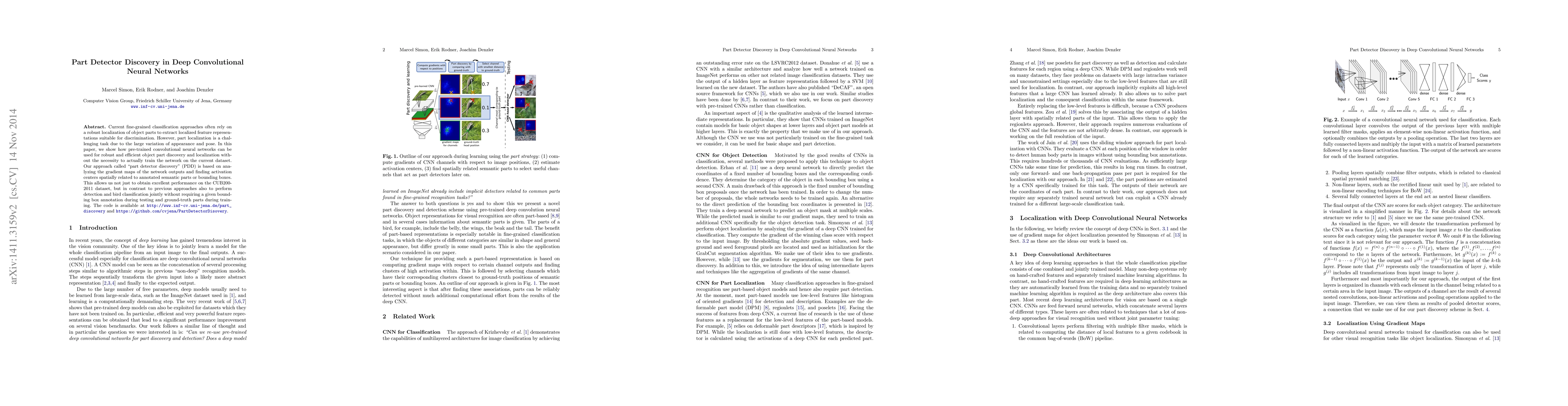 Researchers developed a method called part detector discovery (PDD) to automatically detect object parts in deep neural networks without requiring training on the specific dataset. PDD improves performance on fine-grained classification tasks by analyzing gradient maps of network outputs.