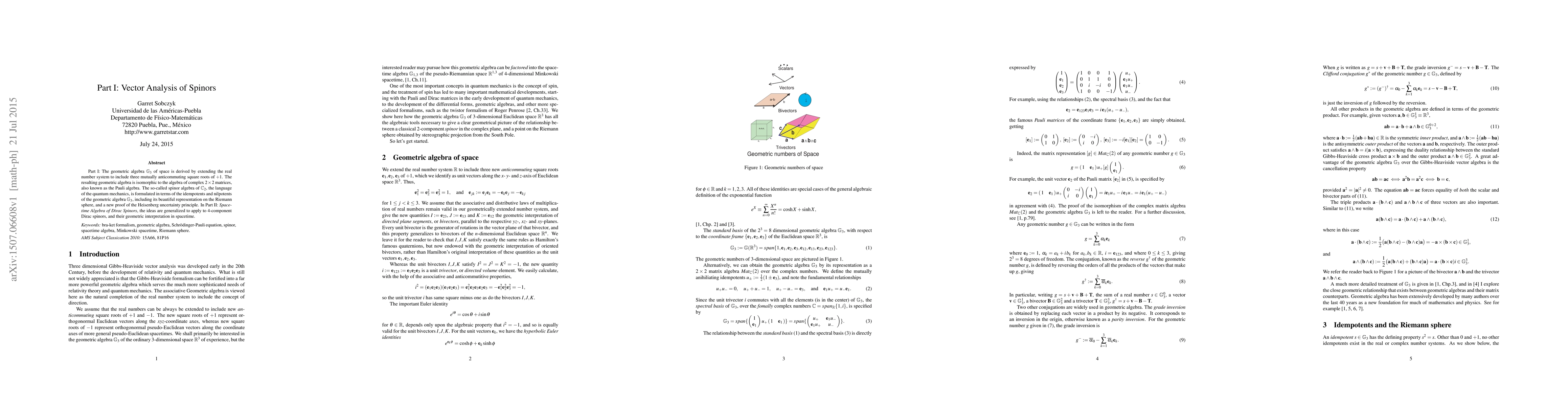 This paper derives the geometric algebra of space using three anticommuting square roots of plus one, establishing an isomorphism with the Pauli algebra. It formulates the spinor algebra of quantum mechanics through geometric algebra's idempotents and nilpotents, and provides a new proof of the Heisenberg uncertainty principle.