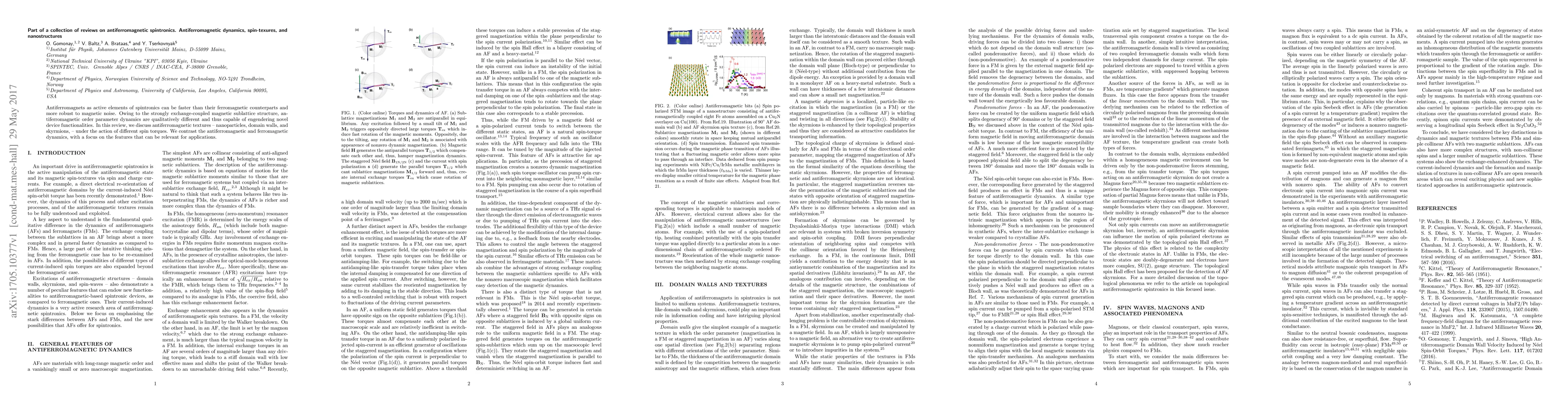 This review explores the dynamics and nanostructures of antiferromagnetic materials in spintronics, highlighting their potential for faster and more noise-resistant devices compared to ferromagnetic materials. It examines antiferromagnetic textures like nanoparticles, domain walls, and skyrmions, and contrasts their dynamics with ferromagnetic counterparts to identify features relevant for practical applications.