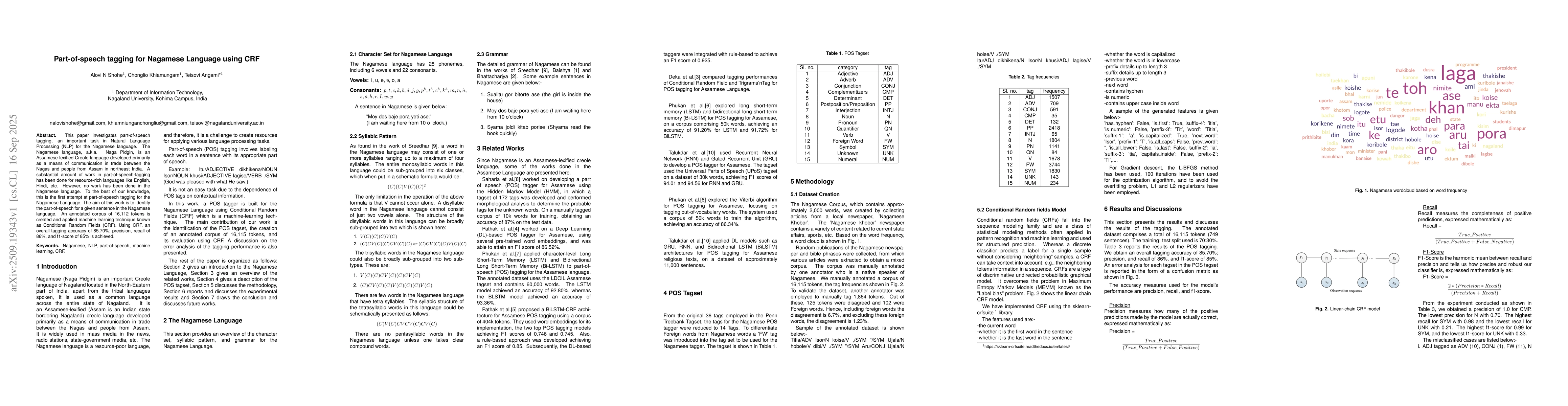 First part-of-speech tagging system for Nagamese language, creating both the annotated corpus and the CRF-based tagging model for this under-resourced creole language