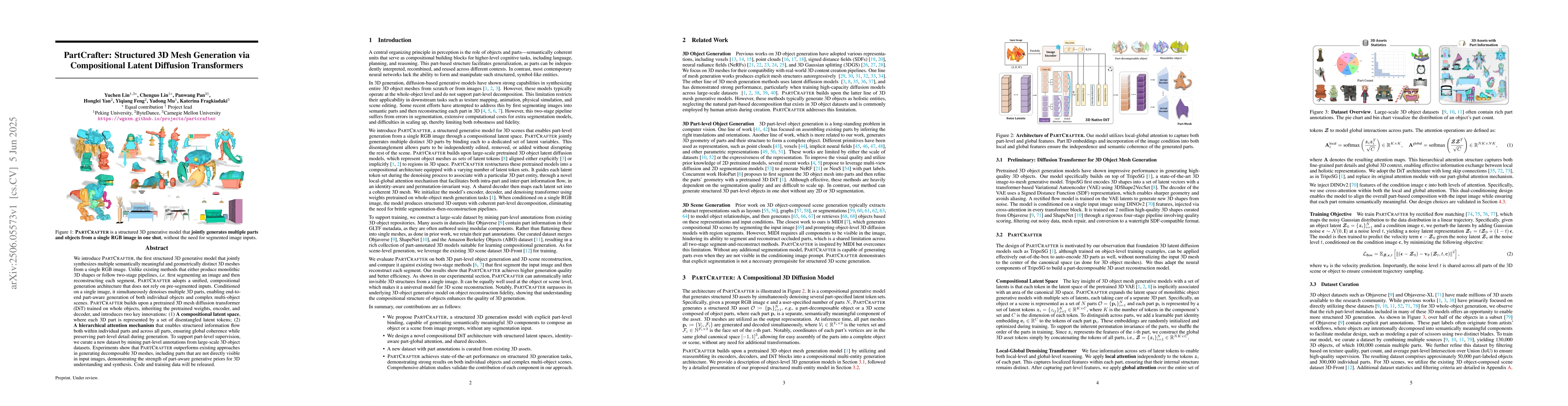 We introduce PartCrafter, the first structured 3D generative model that jointly synthesizes multiple semantically meaningful and geometrically distinct 3D meshes from a single RGB image. Unlike existing methods that either produce monolithic 3D shapes or follow two-stage pipelines, i.e., first segmenting an image and then reconstructing each segment, PartCrafter adopts a unified, compositional generation architecture that does not rely on pre-segmented inputs. Conditioned on a single image, it simultaneously denoises multiple 3D parts, enabling end-to-end part-aware generation of both individual objects and complex multi-object scenes. PartCrafter builds upon a pretrained 3D mesh diffusion transformer (DiT) trained on whole objects, inheriting the pretrained weights, encoder, and decoder, and introduces two key innovations: (1) A compositional latent space, where each 3D part is represented by a set of disentangled latent tokens; (2) A hierarchical attention mechanism that enables structured information flow both within individual parts and across all parts, ensuring global coherence while preserving part-level detail during generation. To support part-level supervision, we curate a new dataset by mining part-level annotations from large-scale 3D object datasets. Experiments show that PartCrafter outperforms existing approaches in generating decomposable 3D meshes, including parts that are not directly visible in input images, demonstrating the strength of part-aware generative priors for 3D understanding and synthesis. Code and training data will be released.