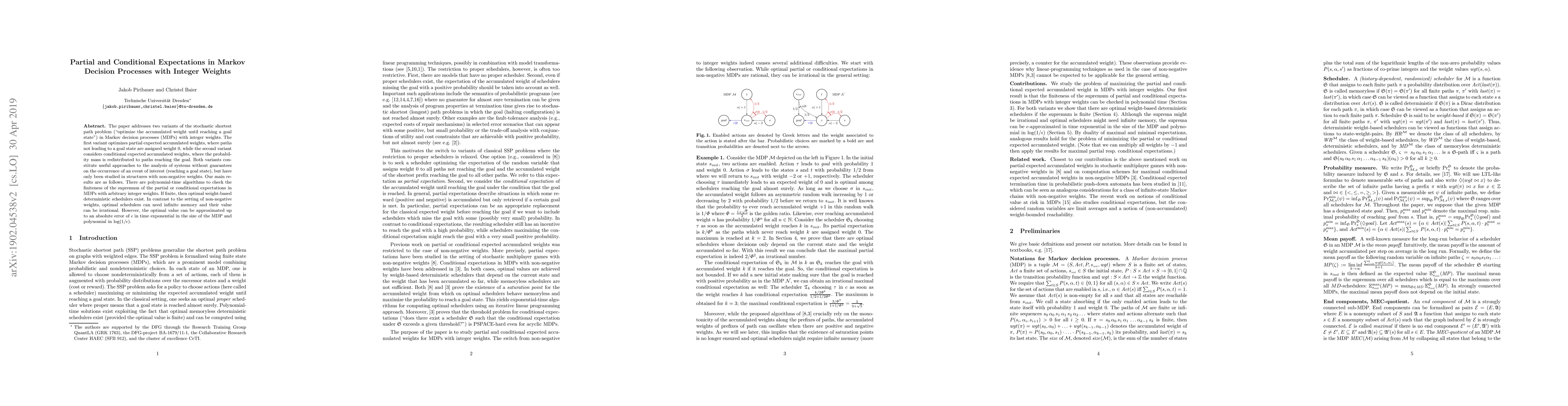 The paper addresses two variants of the stochastic shortest path problem ('optimize the accumulated weight until reaching a goal state') in Markov decision processes (MDPs) with integer weights. The first variant optimizes partial expected accumulated weights, where paths not leading to a goal state are assigned weight 0, while the second variant considers conditional expected accumulated weights, where the probability mass is redistributed to paths reaching the goal. Both variants constitute useful approaches to the analysis of systems without guarantees on the occurrence of an event of interest (reaching a goal state), but have only been studied in structures with non-negative weights. Our main results are as follows. There are polynomial-time algorithms to check the finiteness of the supremum of the partial or conditional expectations in MDPs with arbitrary integer weights. If finite, then optimal weight-based deterministic schedulers exist. In contrast to the setting of non-negative weights, optimal schedulers can need infinite memory and their value can be irrational. However, the optimal value can be approximated up to an absolute error of $\epsilon$ in time exponential in the size of the MDP and polynomial in $\log(1/\epsilon)$.