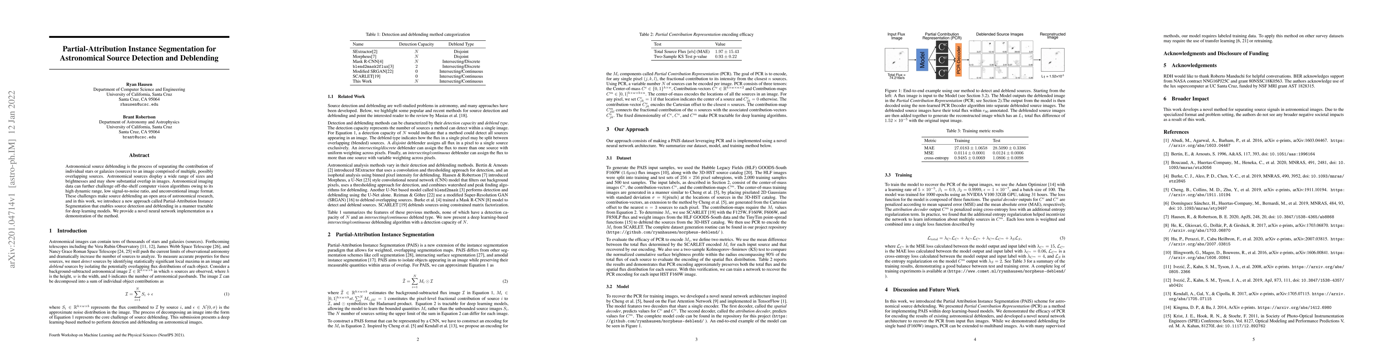 This paper introduces a novel Partial-Attribution Instance Segmentation method for the challenging task of astronomical source deblending, enabling the separation of overlapping stars or galaxies in images. The proposed approach is demonstrated through a new neural network implementation, addressing the unique challenges of astronomical imaging data.