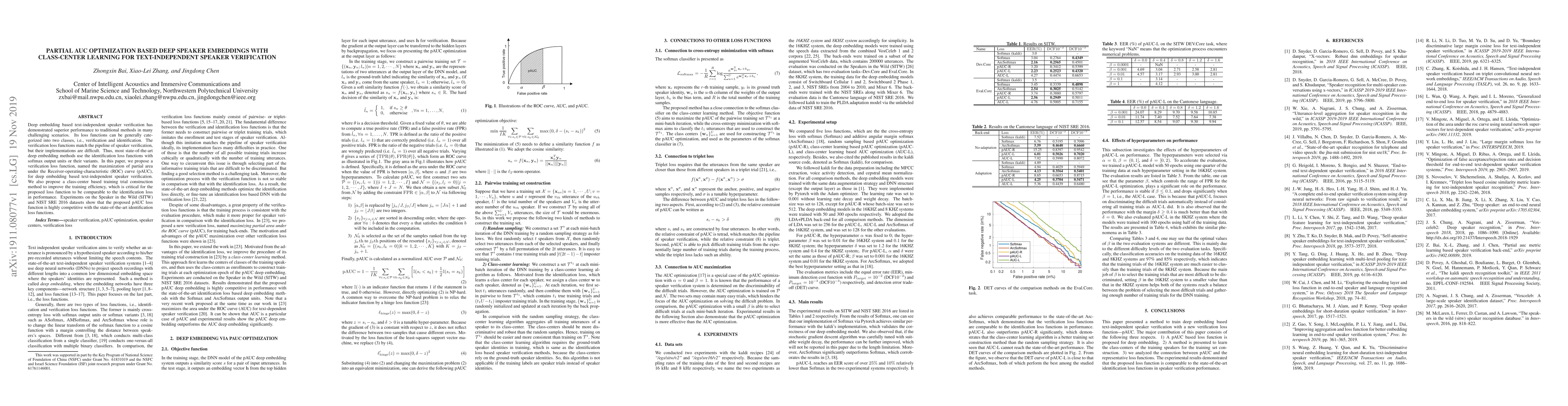 This paper proposes a new verification loss function, maximization of partial AUC (pAUC), for text-independent speaker verification, and introduces a class-center learning method to enhance training efficiency. Experimental results demonstrate that the proposed pAUC loss function is competitive with state-of-the-art identification loss functions on the SITW and NIST SRE 2016 datasets.