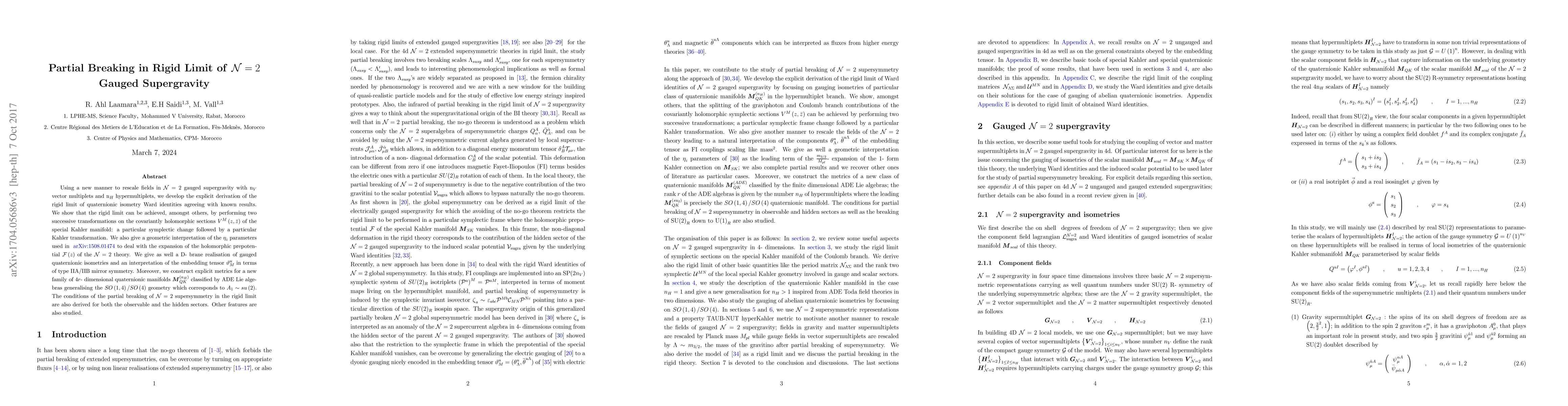 This paper develops the rigid limit of $\mathcal{N}=2$ gauged supergravity through specific field rescales, deriving quaternionic isometry Ward identities and providing geometric interpretations of related parameters. It also introduces a new family of $4r$-dimensional quaternionic manifolds classified by ADE Lie algebras and explores the partial breaking of $\mathcal{N}=2$ supersymmetry in the rigid limit.