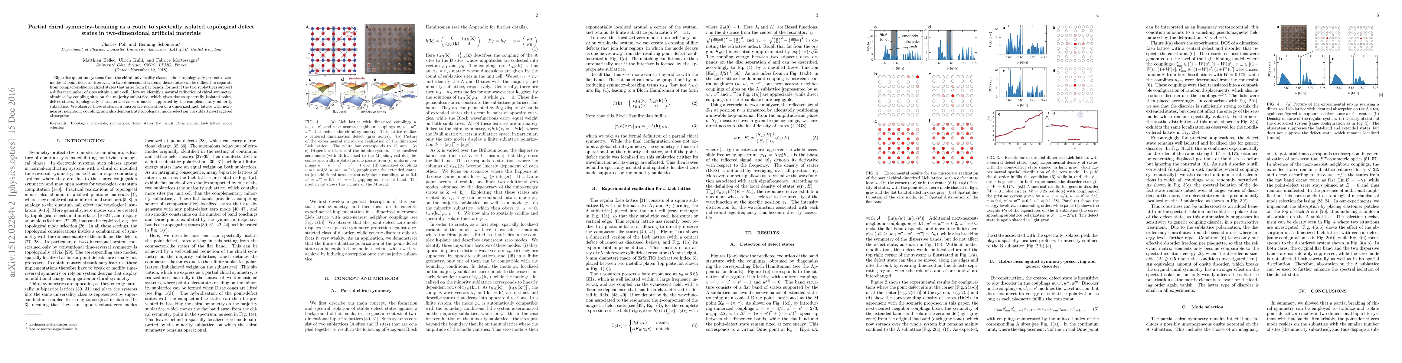 Bipartite quantum systems from the chiral universality classes admit topologically protected zero modes at point defects. However, in two-dimensional systems these states can be difficult to separate from compacton-like localized states that arise from flat bands, formed if the two sublattices support a different number of sites within a unit cell. Here we identify a natural reduction of chiral symmetry, obtained by coupling sites on the majority sublattice, which gives rise to spectrally isolated point-defect states, topologically characterized as zero modes supported by the complementary minority sublattice. We observe these states in a microwave realization of a dimerized Lieb lattice with next-nearest neighbour coupling, and also demonstrate topological mode selection via sublattice-staggered absorption.