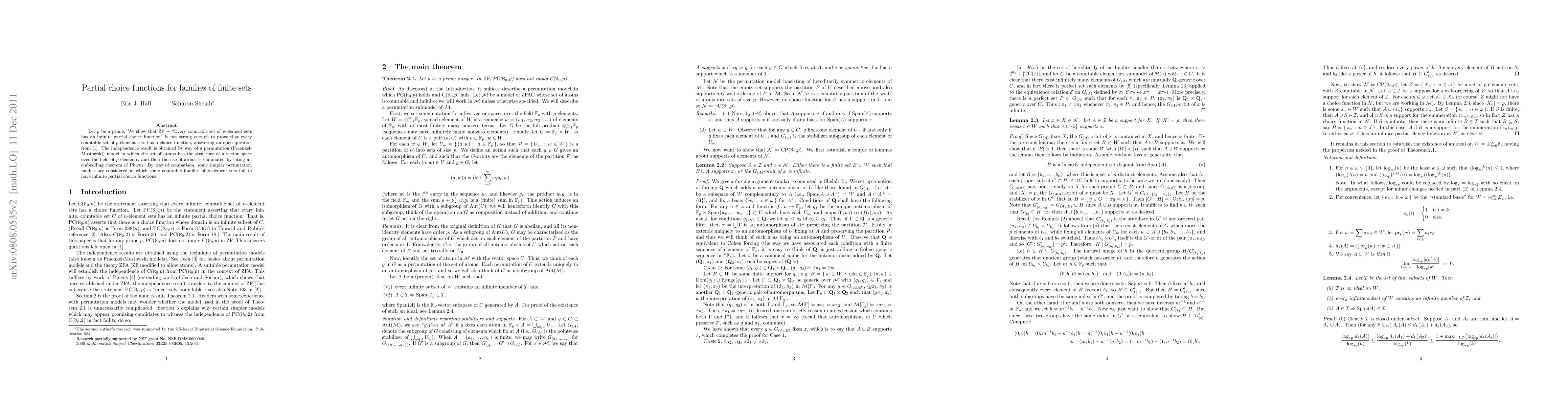 This paper demonstrates that ZF set theory augmented with the existence of infinite partial choice functions for countable families of finite sets does not guarantee the existence of choice functions for countable sets of m-element sets, where m > 2. For prime m, this independence is shown using permutation models with atom structures resembling vector spaces over fields of p elements.