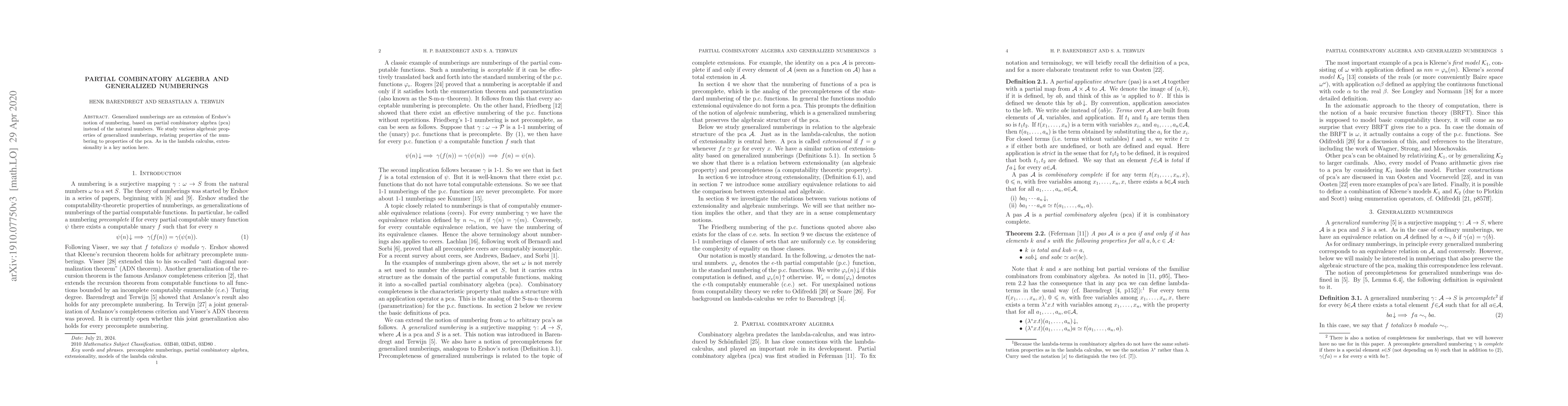 Generalized numberings are an extension of Ershov's notion of numbering, based on partial combinatory algebra (pca) instead of the natural numbers. We study various algebraic properties of generalized numberings, relating properties of the numbering to properties of the pca. As in the lambda calculus, extensionality is a key notion here.