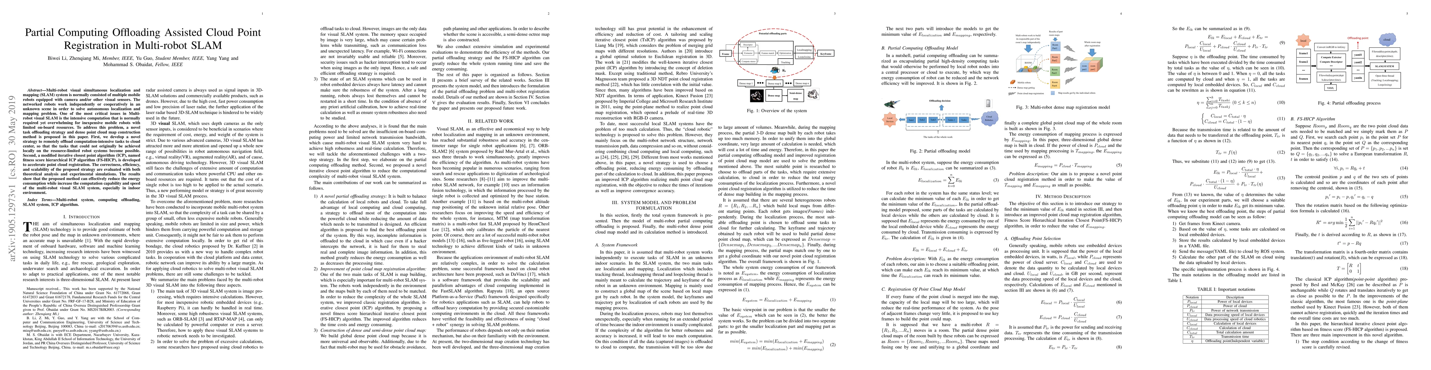 This paper proposes a novel offloading strategy for computation-intensive tasks in multi-robot SLAM, enabling resource-limited robots to offload tasks to a cloud center. It also introduces a modified ICP algorithm for faster point cloud registration, demonstrating improved energy efficiency and computational speed in simulations.