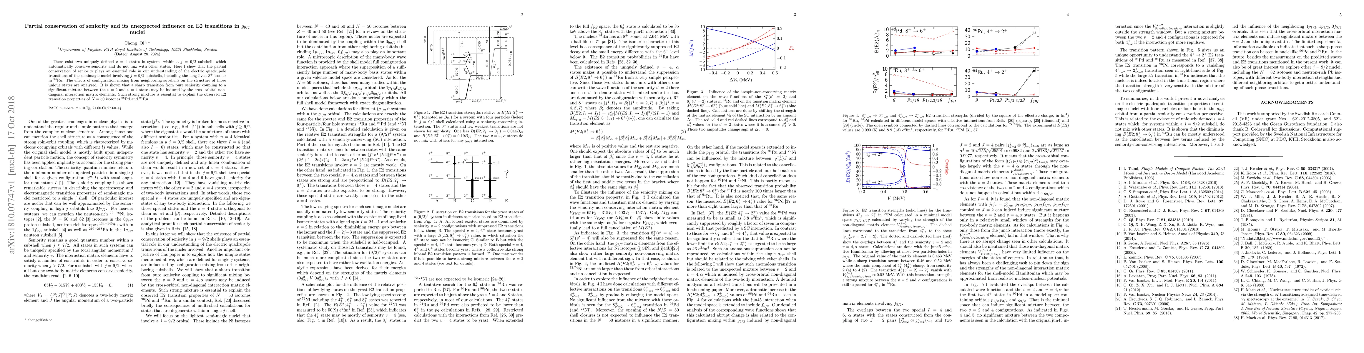 This paper investigates the partial conservation of seniority in $j=9/2$ subshells, demonstrating its crucial role in understanding electric quadrupole transitions in semimagic nuclei. It reveals that significant configuration mixing, induced by cross-orbital interactions, explains the observed E2 transition properties in $N=50$ isotones like $^{96}$Pd and $^{94}$Ru.