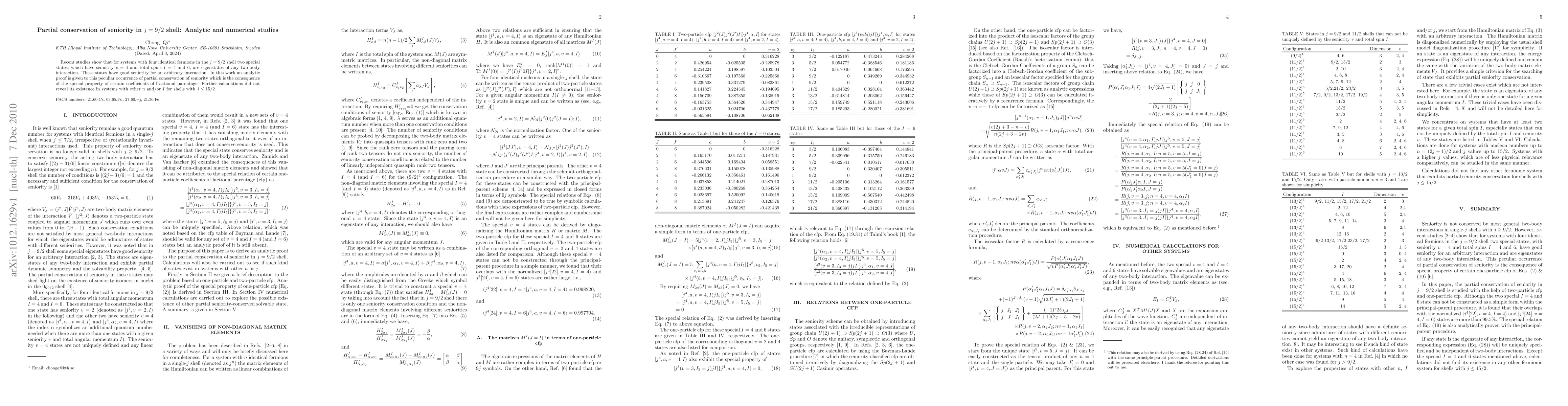 This paper provides an analytic proof for the partial conservation of seniority in the $j=9/2$ shell for four identical fermions, showing that two specific states with seniority $v=4$ and total spins $I=4$ and $6$ are eigenstates of any two-body interaction. Numerical studies confirm this phenomenon does not extend to other configurations or shells with $j\leq15/2$.