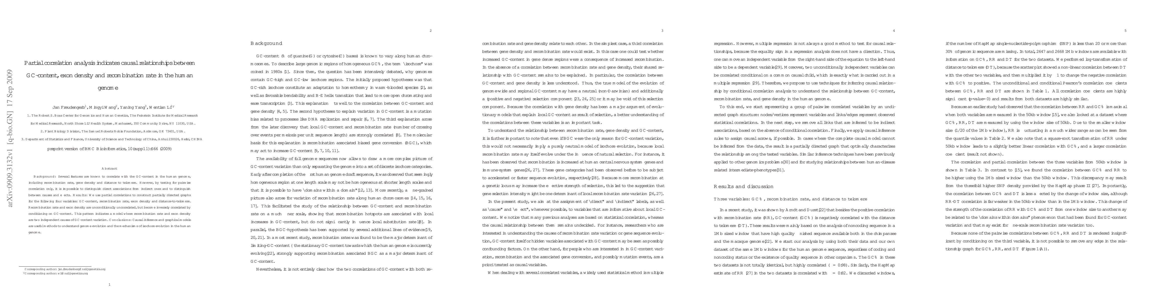 This study employs partial correlation analysis to reveal causal relationships between GC-content, exon density, and recombination rate in the human genome, demonstrating that recombination rate and exon density independently influence GC-content variation. The findings highlight the utility of causal inference in understanding genome evolution.