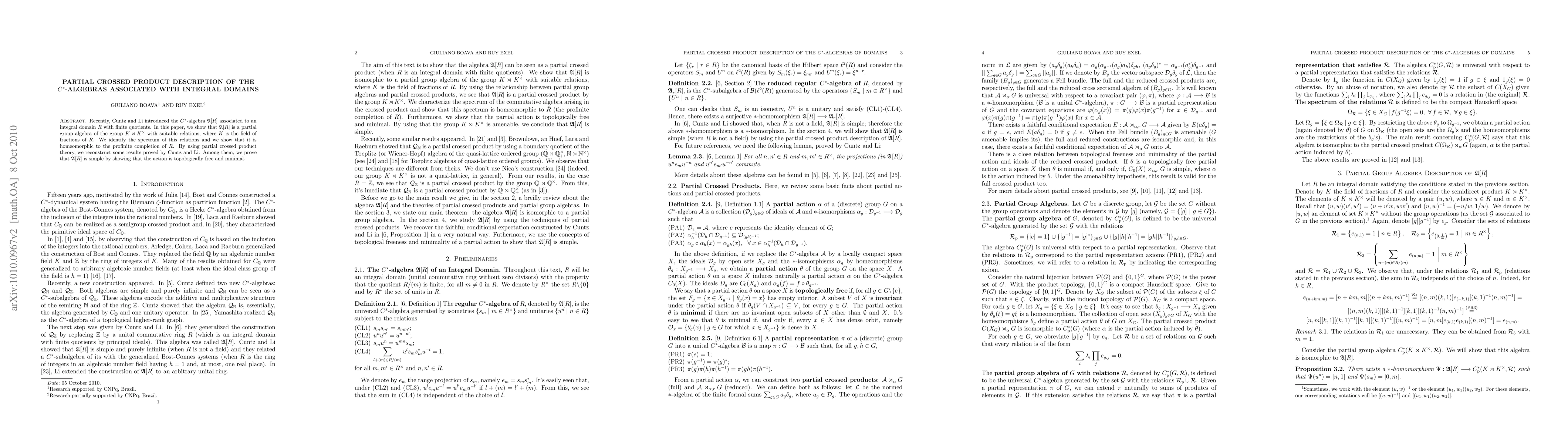 Recently, Cuntz and Li introduced the C^*-algebra A[R] associated to an integral domain R with finite quotients. In this paper, we show that A[R] is a partial group algebra of the group $K \rtimes K^x$ with suitable relations, where K is the field of fractions of R. We identify the spectrum of this relations and we show that it is homeomorphic to the profinite completion of R. By using partial crossed product theory, we reconstruct some results proved by Cuntz and Li. Among them, we prove that $\ar$ is simple by showing that the action is topologically free and minimal.