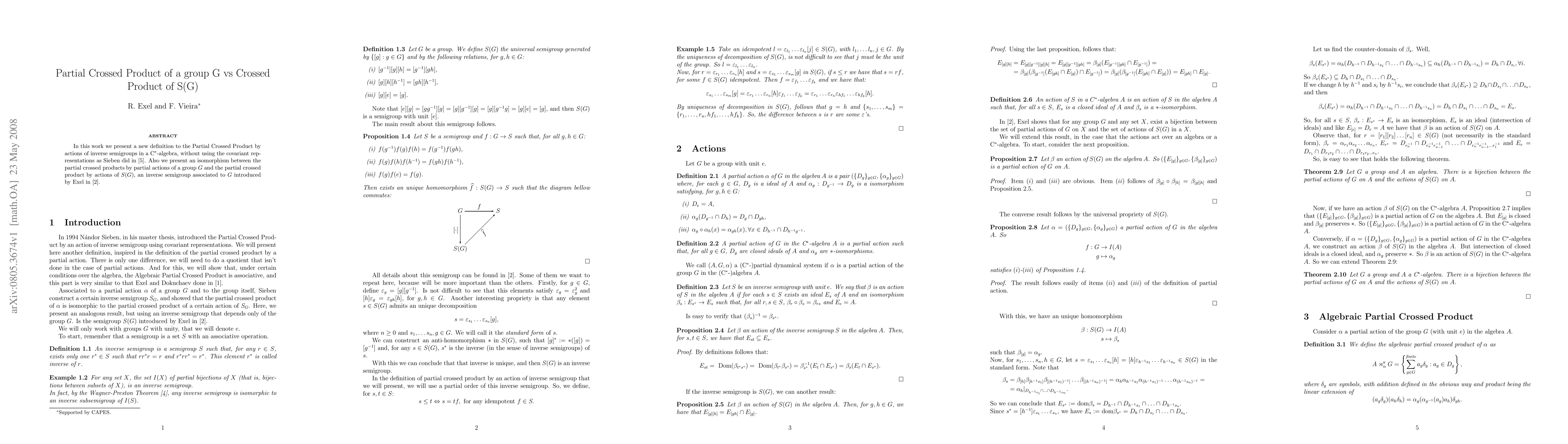 In this work we present a new definition to the Partial Crossed Product by actions of inverse semigroups in a C^*-algebra, without using the covariant representations as Sieben did in [5]. Also we present an isomorphism between the partial crossed products by partial actions of a group G and the partial crossed product by actions of S(G), an inverse semigroup associated to G introduced by Exel in [2].