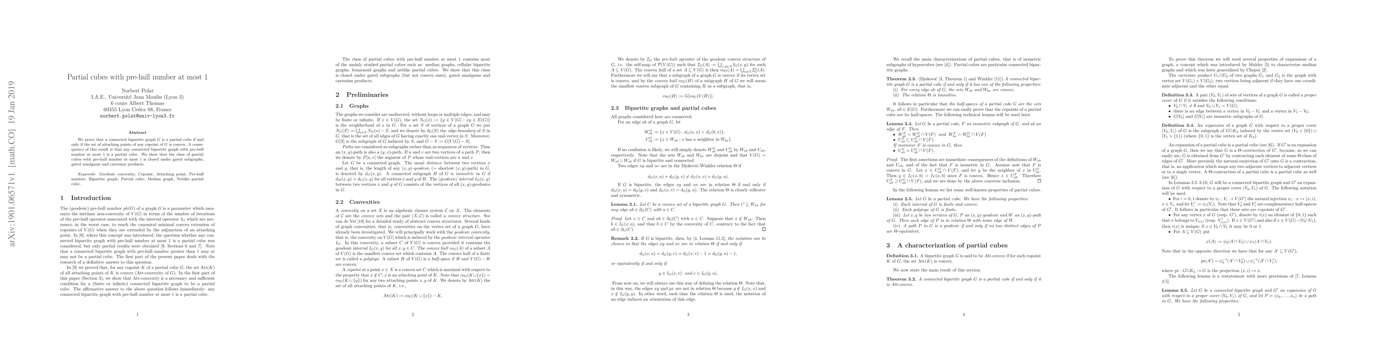 This paper proves that a connected bipartite graph is a partial cube if the set of attaching points of any copoint is convex. It also establishes that connected bipartite graphs with a pre-hull number at most 1 are partial cubes and shows that this class is closed under gated subgraphs, gated amalgams, and Cartesian products.