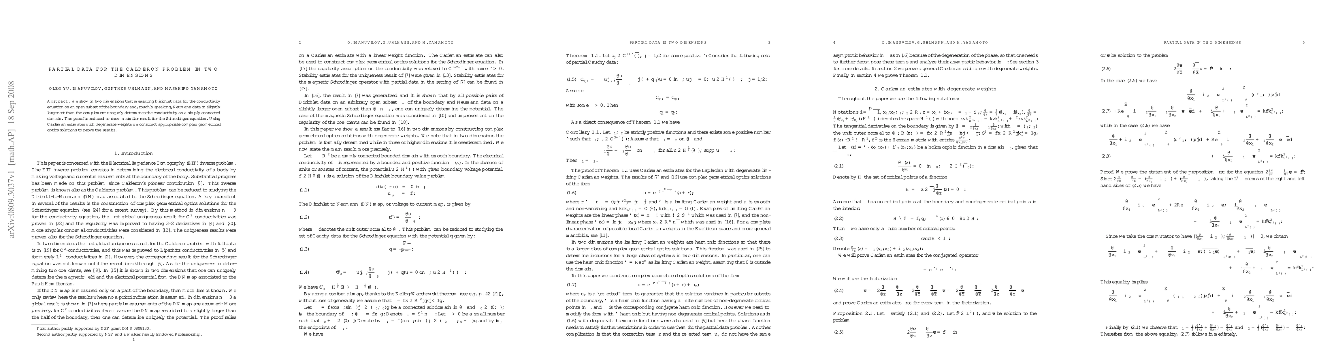 We show in two dimensions that measuring Dirichlet data for the conductivity equation on an open subset of the boundary and, roughly speaking, Neumann data in slightly larger set than the complement uniquely determines the conductivity on a simply connected domain. The proof is reduced to show a similar result for the Schr\"odinger equation. Using Carleman estimates with degenerate weights we construct appropriate complex geometrical optics solutions to prove the results.