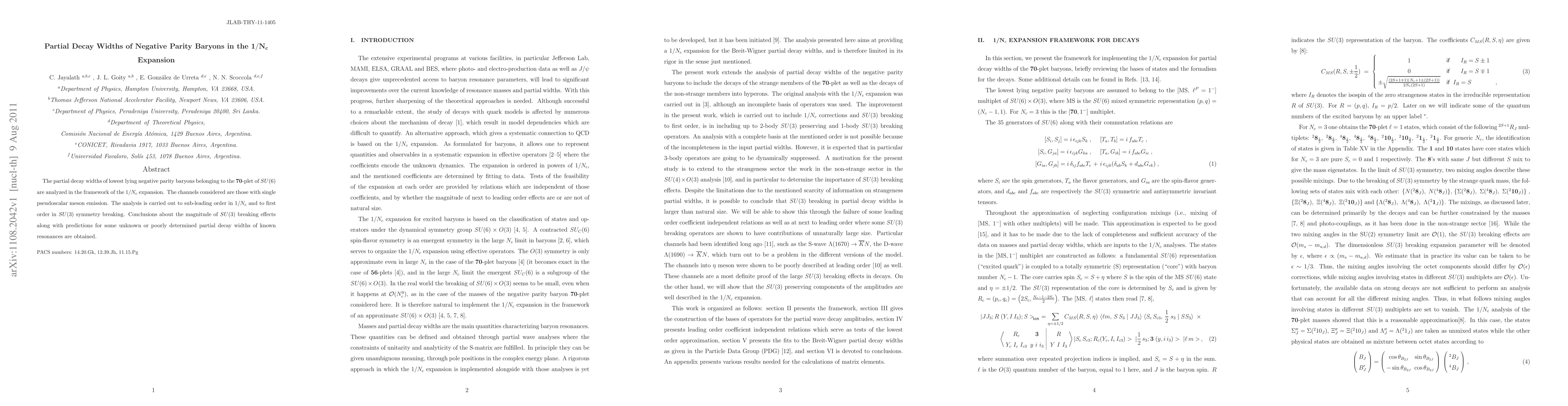 The partial decay widths of lowest lying negative parity baryons belonging to the 70-plet of SU(6) are analyzed in the framework of the 1/Nc expansion The channels considered are those with single pseudo-scalar meson emission. The analysis is carried out to sub-leading order in 1/Nc and to first order in SU(3) symmetry breaking. Conclusions about the magnitude of SU(3) breaking effects along with predictions for some unknown or poorly determined partial decay widths of known resonances are obtained.
