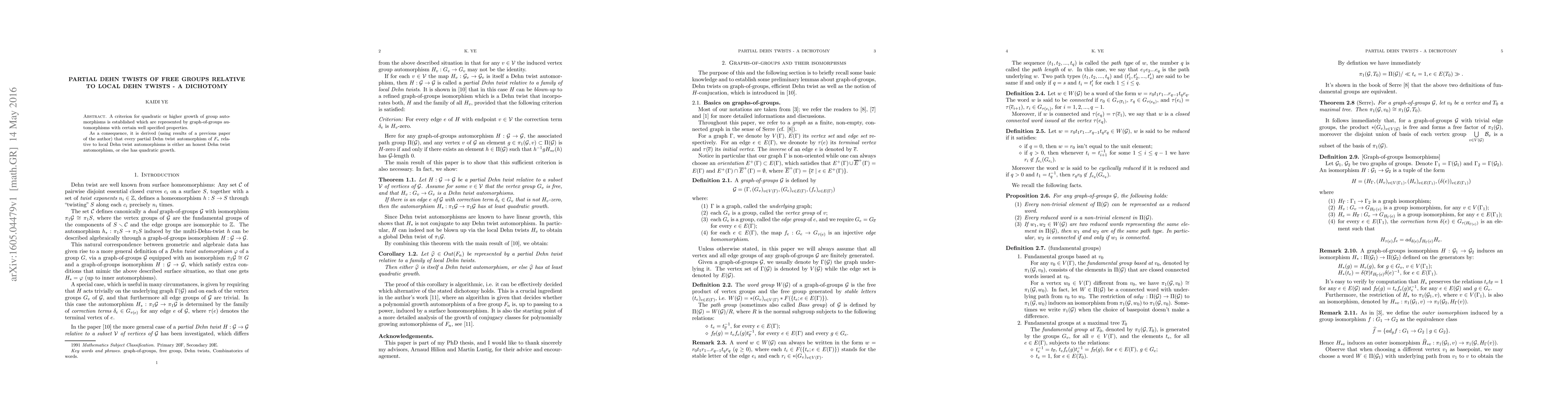 A criterion for quadratic or higher growth of group automorphisms is established which are represented by graph-of-groups automorphisms with certain well specified properties. As a consequence, it is derived (using results of a previous paper of the author) that every partial Dehn twist automorphism of $\FN$ relative to local Dehn twist automorphisms is either an honest Dehn twist automorphism, or else has quadratic growth.