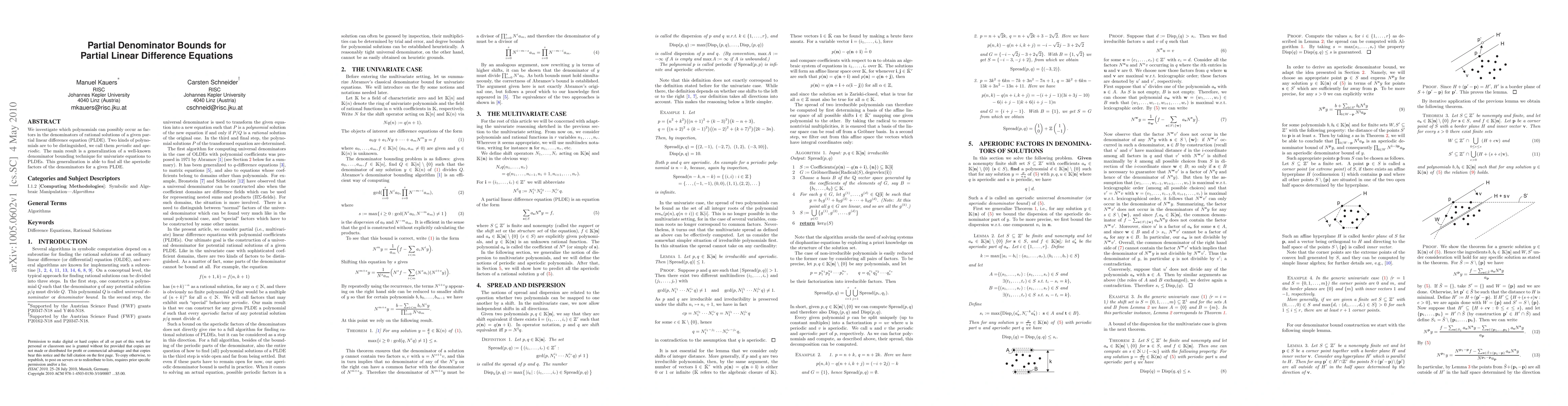 We investigate which polynomials can possibly occur as factors in the denominators of rational solutions of a given partial linear difference equation (PLDE). Two kinds of polynomials are to be distinguished, we call them /periodic/ and /aperiodic/. The main result is a generalization of a well-known denominator bounding technique for univariate equations to PLDEs. This generalization is able to find all the aperiodic factors of the denominators for a given PLDE.