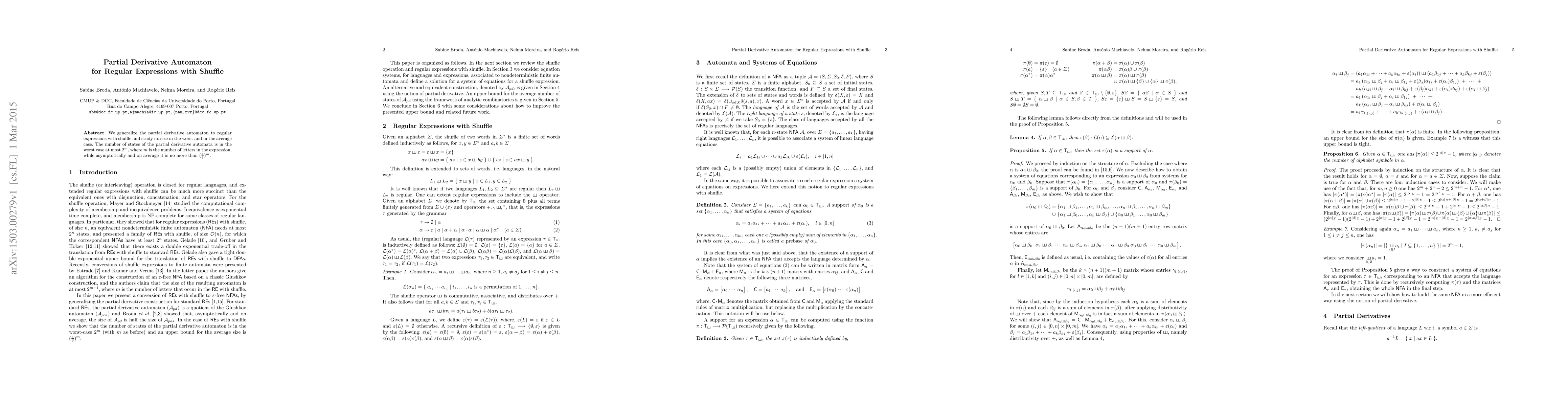 We generalize the partial derivative automaton to regular expressions with shuffle and study its size in the worst and in the average case. The number of states of the partial derivative automata is in the worst case at most 2^m, where m is the number of letters in the expression, while asymptotically and on average it is no more than (4/3)^m.