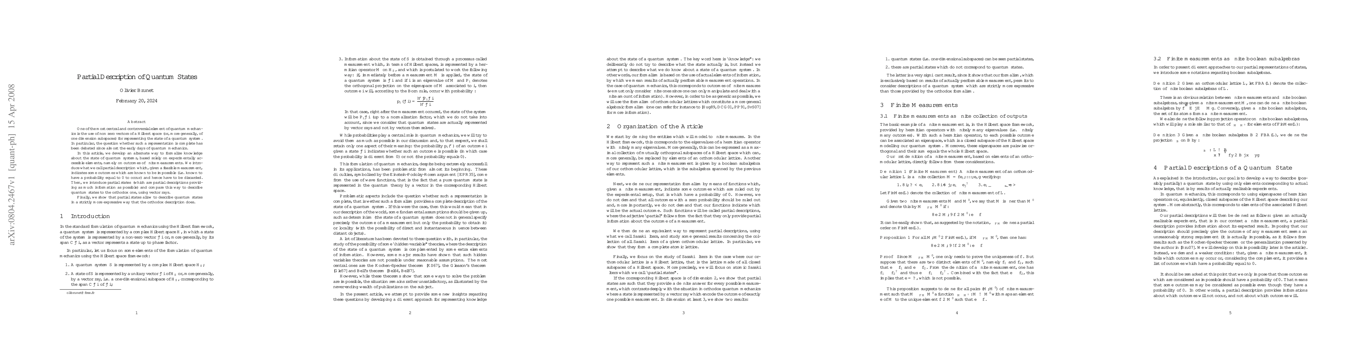 One of the most central and controversial element of quantum mechanics is the use of non zero vectors of a Hilbert space (or, more generally, of one dimension subspaces) for representing the state of a quantum system. In particular, the question whether such a representation is complete has been debated since almost the early days of quantum mechanics. In this article, we develop an alternate way to formalize knowledge about the state of quantum systems, based solely on experimentally accessible elements, namely on outcomes of finite measurements. We introduce what we call partial description which, given a feasible measurement, indicates some outcomes which are known to be impossible (i.e. known to have a probability equal to 0 to occur) and hence have to be discarded. Then, we introduce partial states (which are partial descriptions providing as much information as possible) and compare this way to describe quantum states to the orthodox one, using vector rays. Finally, we show that partial states allow to describe quantum states in a strictly more expressive way that the orthodox description does.